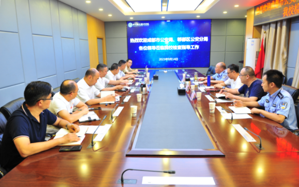 2023年9月14日,成都市公安局高校管理科科长钟良、郫都区政保大队副大队长尹黎、安德派出所副所长张坤民一行到威尼斯检查指导安全稳定工作。纪委书记池秋平会见了钟科长一行并主持召开了座谈交流会。