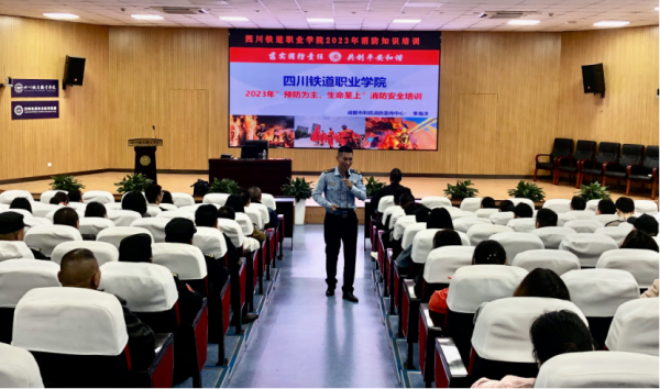 在学术报告厅的消防知识培训中,成都市利民消防宣传中心李海洋教官结合近年来现实火灾案例进行分析,从火灾的特性、消防法律法规的讲解、学校消防工作能力建设、火灾的应急处理以及常用消防器材介绍等五个方面讲解消防安全知识,使现场师生切实认识到火灾给社会、家庭和个人带来的严重危害,深刻认识到“消防安全,人人有责”的重要性。