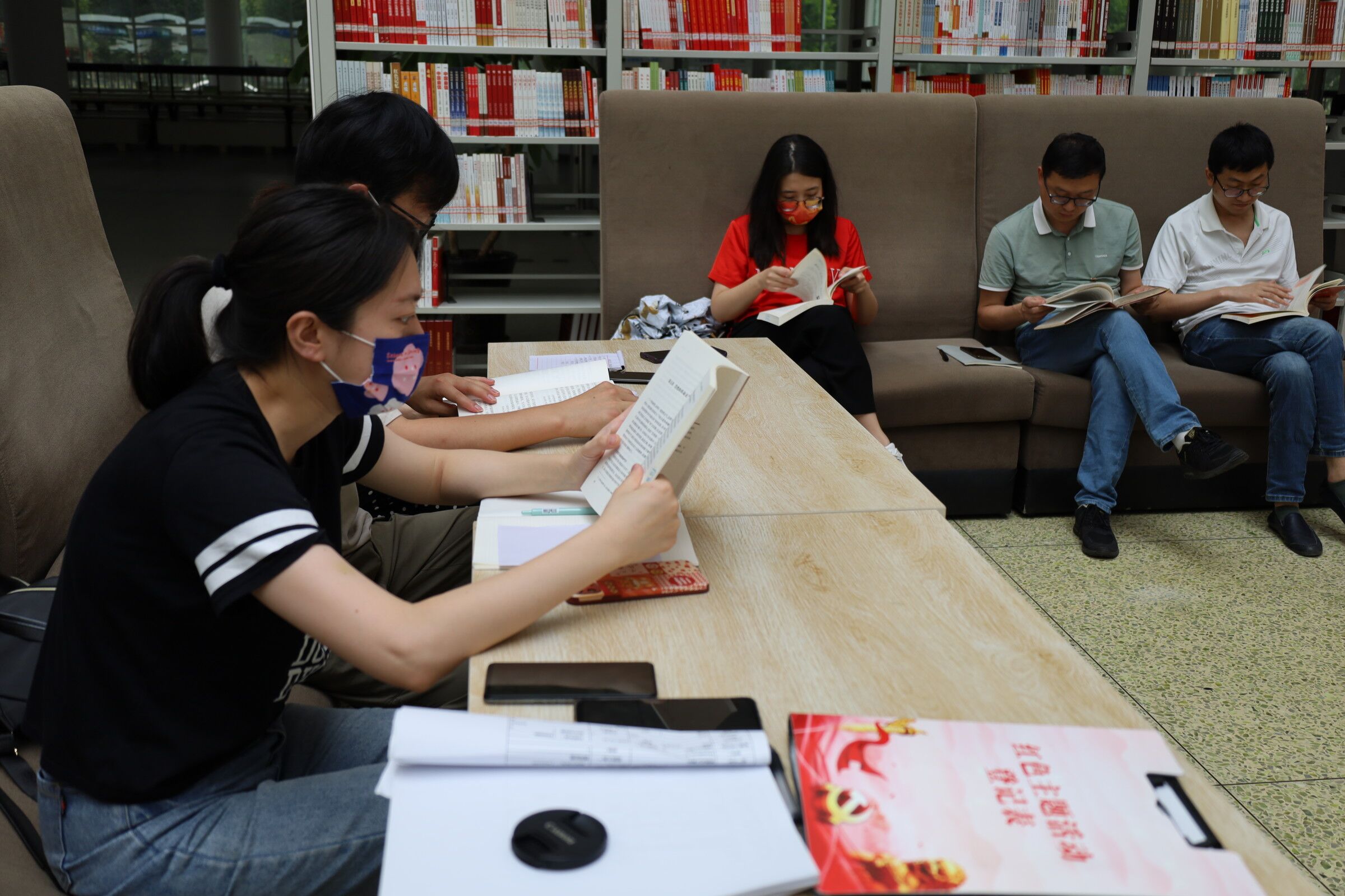 为激励党员学习红色书籍,传承红色基因,坚定理想信念,践行初心使命,5月30日,图书信息中心党支部组织全体党员在图书馆一楼红色书籍专柜开展“读红色书籍 践初心使命”读书交流主题党日活动。 党员们分享了阅读《中国共产党简史》《红岩精神》《团结凝聚人心》《像榜样学习》《毛泽东纪事》等红色书籍的读书心得体会。学习内容从中国共产党的成立到中国共产党成立一百周年。从零到一百,是一个世纪的总结,也是新征程的开始,登高望远,不畏前路艰难,脚踏实地,方能行稳致远。 本次活动,引导党员自觉养成爱读书、读好书、善读书的习惯,弘扬了爱国主义精神和革命精神,是一次革命传统和理想信念教育。
