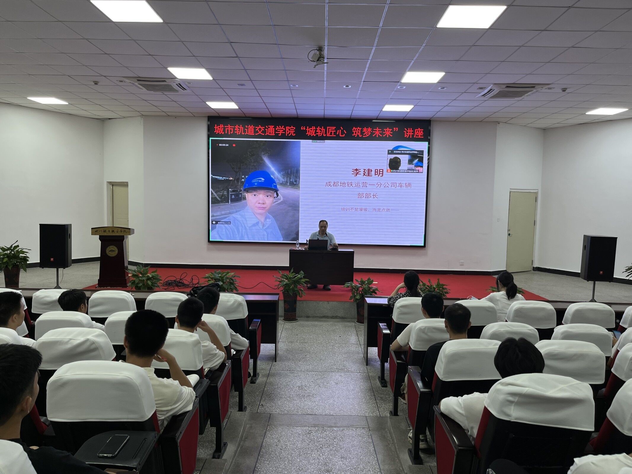讲座通过学术报告厅线下加教室线上相结合的方式开展,城市轨道交通学院全体学生参加了讲座。