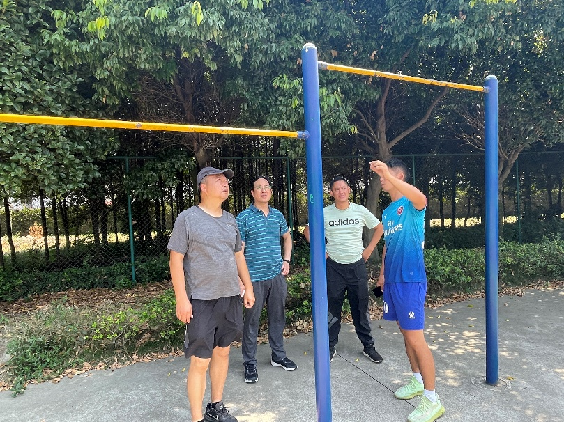 为切实加强校园安全工作,根据学校《安全管理责任清单》《校园突发事件应急处置预案》《一日安全常规检查办法》《节假日安全大检查工作方案》等文件精神, 7月7日,公共教学部副主任杨伦军组织体育教研室全体教师进行了期末安全大检查。 此次安全大检查主要针对体育场地设施及周边环境、办公室电器设备、消防设施等方面进行隐患排查,就存在的安全隐患已落实整改,将在后期形成安全检查报告上报学校相关部门。 杨主任强调,校园安全是底线,树立“生命至上,安全第一”的发展理念,要牢记安全底线意识。他希望体育老师定期开展隐患排查整治工作,确保体育活动的安全开展,为师生创建安全舒适的锻炼环境,迎接党的二十大胜利召开。 图2.检查仰卧起坐器材 |