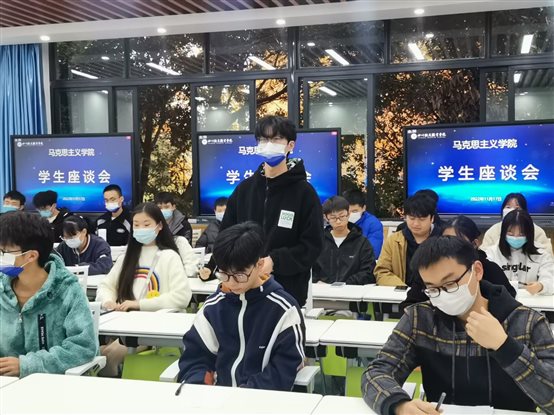 为深入贯彻党的二十大精神,进一步贯彻落实习近平总书记关于思政课建设的系列重要讲话精神,加强教学信息反馈,了解思政课教学情况,有针对性提升思政课教学质量,更好满足学生成长需求,2022年11月17日下午,马克思主义学院在1207、1209教室召开学生座谈会,全校开设思政课班级的学生代表以及马克思主义学院全体无课教师共计115人参加了会议,两会场的座谈会分别由思想道德与法治教研室主任张汇蓉、形势与政策教研室主任王婷婷主持。 会上,学生代表们结合本班思政课教学实际情况,围绕“本学期学习思政课的收获”“最受青年学生欢迎的思政课教学方法”“当前思政课教学中存在的问题及建议”“什么样的思政课最受欢迎”等内容畅所欲言,展开座谈。代表们充分肯定了思政课教师的整体教学效果,普遍认为思政课有利于提升学生的爱国情怀和政治素养,对于培养大学生正确的世界观、人生观、价值观具有积极导向作用;同时指出了思政课存在着学生学习兴趣有待提高、课堂互动形式有待丰富、学习注意力有待加强等问题,并围绕思政课的教学与管理提出了中肯的建议,一是多采用参与式、互动式等教学方法,增强课堂教学的吸引力与感染力;二是通过辩论赛、相关知识竞赛等活动发挥学生的主动性和积极性;三是要对不同专业学生进行个性化教学,使课堂更贴近学生的专业;四是加强课堂教学的管理,采取灵活多样的考勤方式。 在认真听取学生代表的发言后,张汇蓉和王婷婷分别对两个会场的学生发言进行了总结,对学生提出的意见和建议表示了诚挚的感谢,希望同学们进一步认识到思政课对大学生成长成才的意义,积极为思政课建设建言献策,共建学生欢迎的优质思政课堂。 马克思主义学院将以此次座谈会为契机,积极为同学们搭建反馈意见和建言献策的平台。同时学院将围绕本次座谈会收集的意见和建议召开教师专题座谈会,分析并讨论改进措施,提升思政课教学质量,让每一位学生在思政课的学习中学有所思、学有所悟、学有所获。