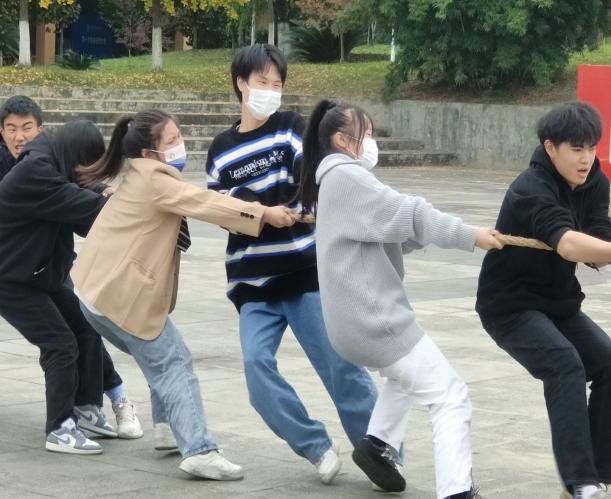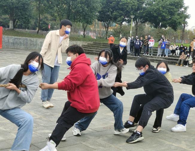 迎七十校庆,展学子风貌。11月13日校庆日当天下午,经济管理学院与电信工程学院在下沉音乐广场举行了“迎校庆”新生拔河友谊赛。此次活动,经济管理学院党总支刘辉书记、辅导员胡月老师、罗雪冰老师等莅临现场指导。