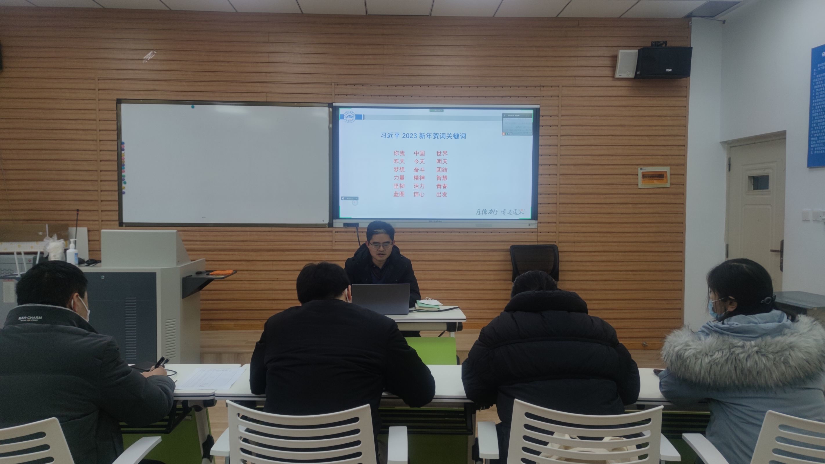 习近平总书记的新年贺词,深情回顾了极不平凡的2022年,深刻指出今天的中国是梦想接连实现、充满生机活力、赓续民族精神、紧密联系世界的中国,展望新的一年,指出明天的中国,奋斗创造奇迹、力量源于团结、希望寄予青年,字字句句振奋人心、令人鼓舞,激励亿万人民踔厉奋发、勇毅前行。 王文杰同志强调,全体教职工要深入领会习近平总书记2023年新年贺词精神,深刻感悟党和国家在极不平凡的一年创造的极不寻常的成就,深刻领悟“两个确立”的决定性意义,坚决做到“两个维护”,坚定不移走中国特色社会主义法治道路,牢记“路虽远,行则将至;事虽难,做则必成”的嘱托,脚踏实地、真抓实干,用心用情用力做好自己的事。