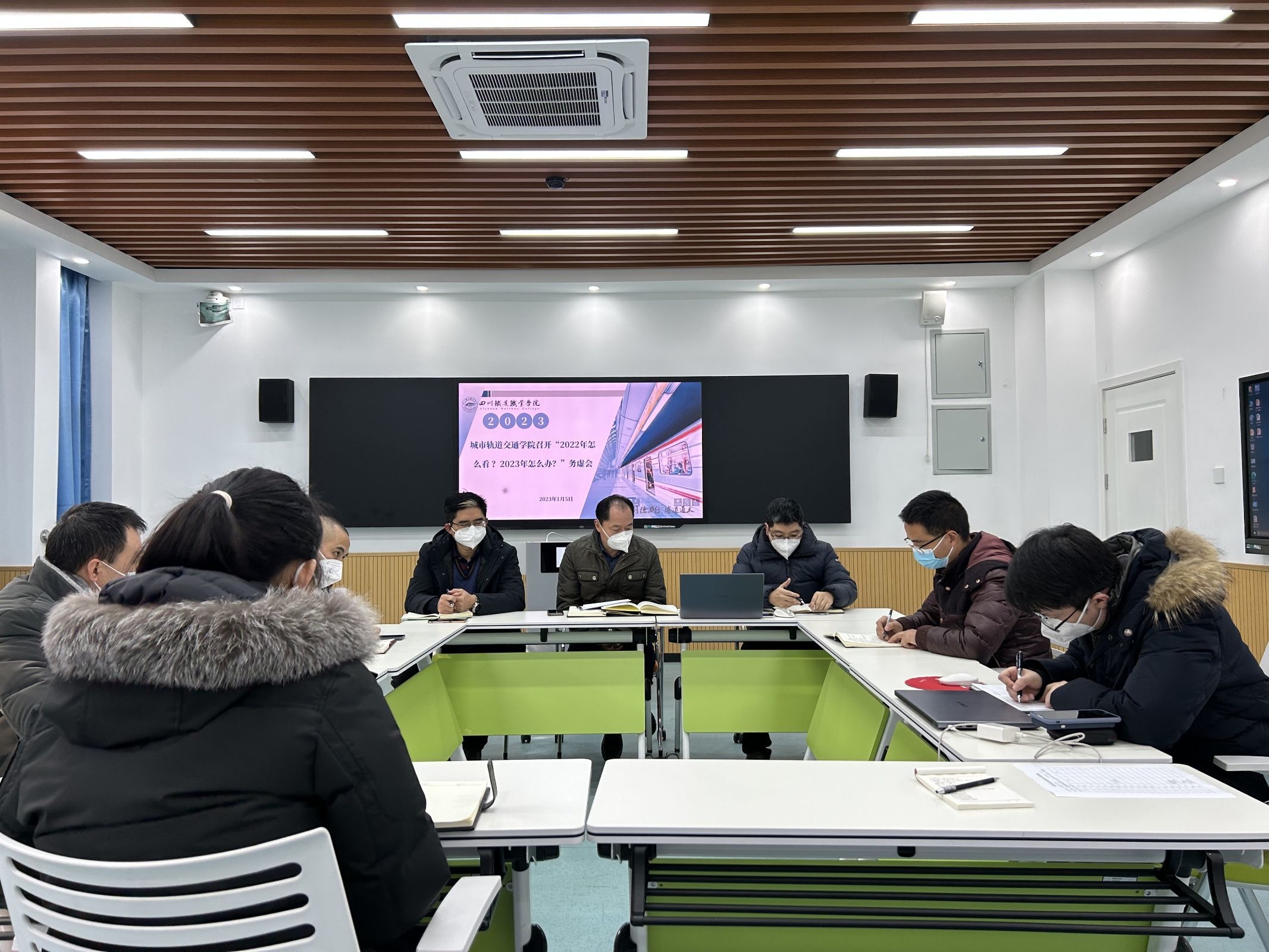为进一步贯彻、落实好学校“2022怎么看?2023怎么干?”务虚会精神,结合学院工作实际,总结梳理,推动学院事业发展,2023年1月5日城市轨道交通学院召开“2022怎么看?2023怎么干?”务虚会,学校党委副书记刘昊君同志出席会议,学院党总支书记王文杰同志主持会议,城市轨道交通学院全体教职工参会。