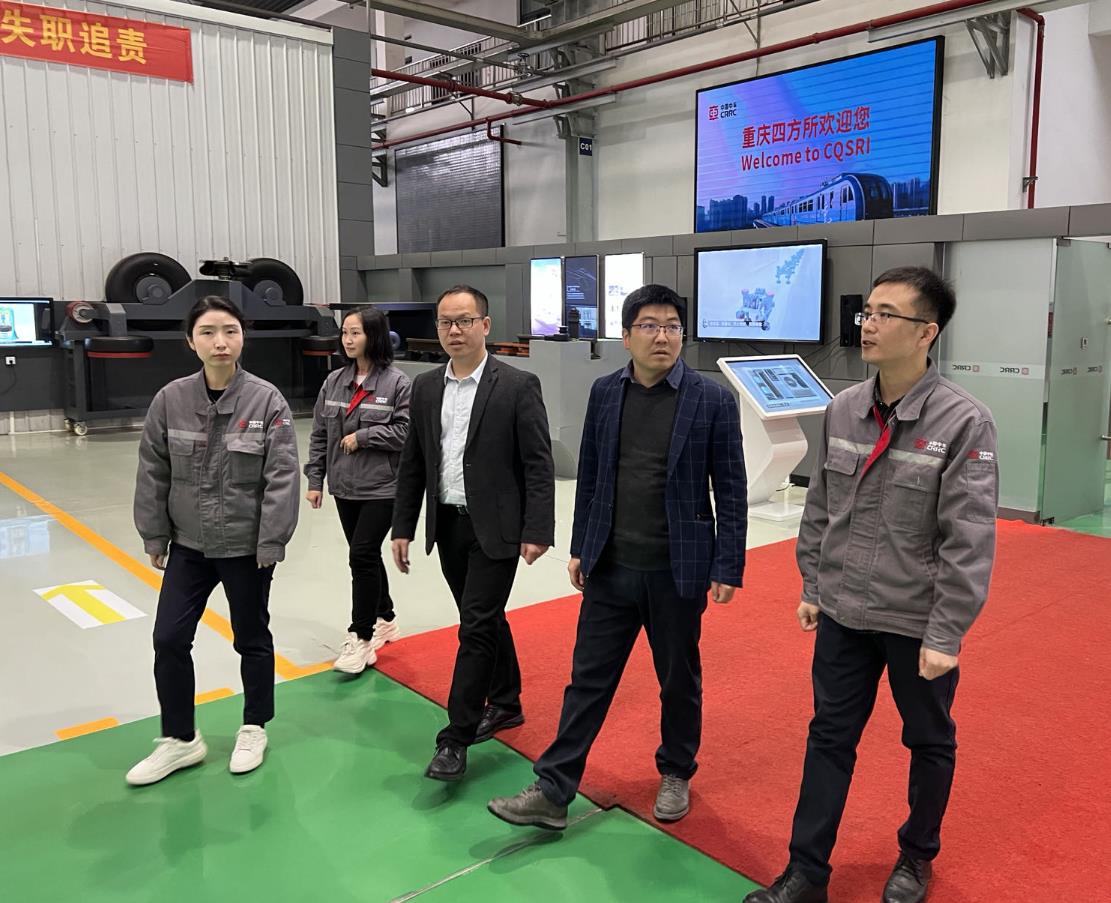 随后,杨凤等来到重庆中车四方所科技有限公司、重庆中车四方所智能装备技术有限公司,深入公司装备制造车间、科研实验室、智能运维试车台、智能运维数字平台考察学习,主要围绕校企资源共享、教学新模式开发、设立校企工作站、建设共享研发中心等方面与公司人力部部长张大威、行政部部长黄于丹等企业领导进行座谈交流。