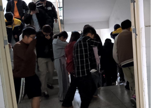 下午13时整,随着演练信号的发出,演练正式拉开帷幕。教学楼内的全体新生在辅导员和现场工作人员的指引下,迅速启动应急响应。同学们按照“靠右行进、有序疏散”的原则,沉着冷静、行动迅速地沿预定疏散路线,快速有序地撤离至指定安全区域——天佑广场。整个疏散过程组织严密、节奏紧凑,无拥挤、踩踏现象发生,充分展现了新生们良好的纪律意识和高效的应急协作能力。