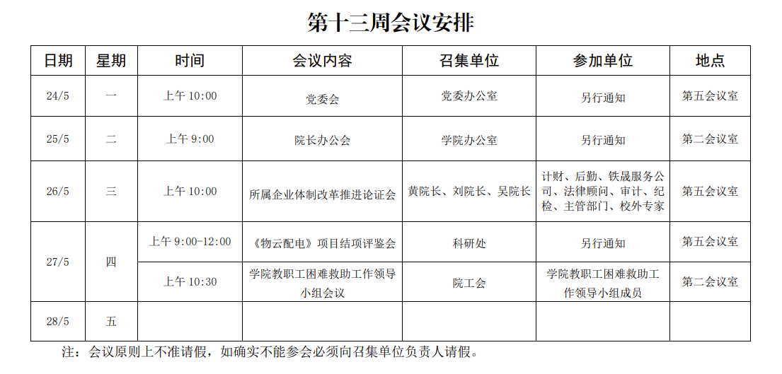 第十三周会议安排