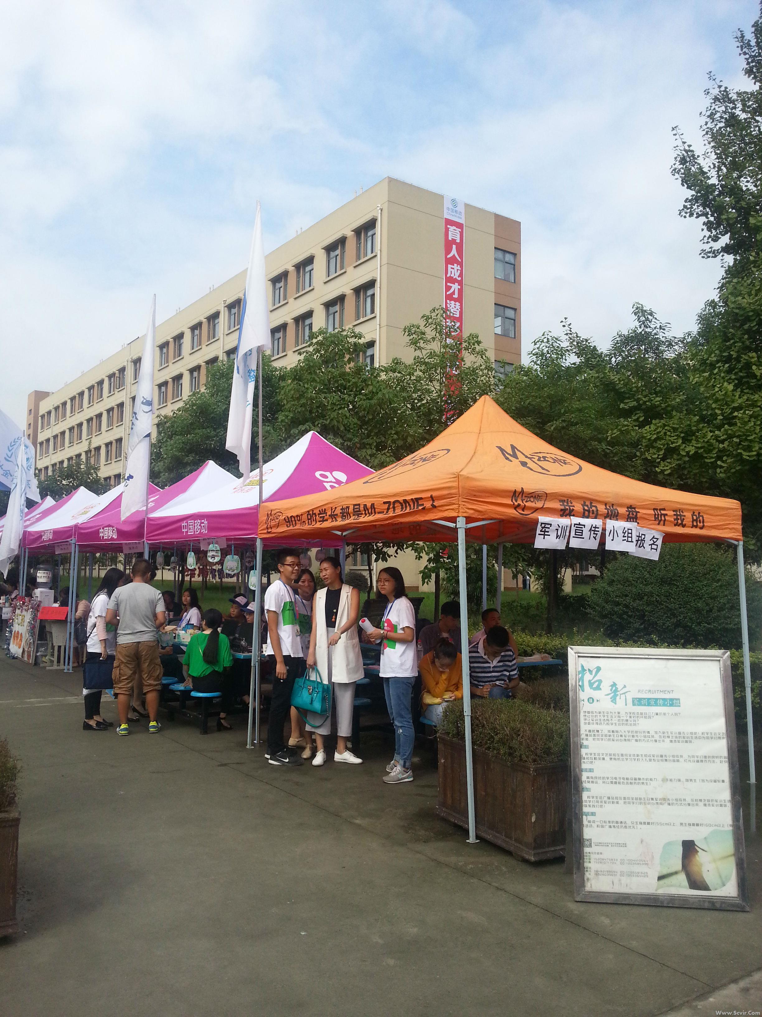 细节周到暖人心 进入新生报到现场,人头攒动,井然有序。新同学们通过悬挂的各类标示牌就能准确找到报到各环节的办理地点。班主任耐心细致地为新生办理报到手续,发放《学生手册》,讲解开学相关事宜。有的班级开通了微信群,扫一扫二维码就可以加入班集体,开学资讯一网打尽;在报到现场的一侧设有家长休息区,并为前来送行的家长提供饮用水;为方便新生临时存放行李,设立了有专人负责的行李存放区,凭号存取;学校食堂还为因赶路而饥肠辘辘的新生和家长们供应可口饭菜。这些贴心的细节,让新生和家长都感受到了学院的关怀和温暖。 在报到现场外,整齐排列着各系迎接新生的宣传海报栏。各系团总支学生会也都设有服务招新点,学生会的学长学姐们在这里与新生互动交流,让他们了解所学专业,了解大学生活。