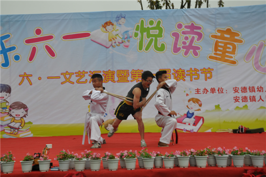——记我院青年志愿者“六一”儿童节幼儿园表演活动 掸去五月的风尘,迎来六月的热情,5月31日,我院青年志愿者带着精心准备的节目来到安德镇幼儿园,参加 “欢乐六一 悦读童心”儿童节庆祝活动,和可爱的小朋友们一起度过了一个愉快的节日。 活动在小朋友们热情的开场舞《国学中国娃》中拉开了序幕,活泼可爱的表演瞬间点燃了现场气氛。随后,我院青年志愿者协会的同学们表演了武术《男儿当自强》,阳光帅气的演员们精神足、气儿爽,太极八卦拳刚中带柔、柔中带钢,外家拳铿锵有力,南拳洒脱利索,让人目不暇接。小朋友们也都情不自禁的舞动手臂,竞相模仿,舞台上婉转腾挪,舞台下掌声四起。最后,压轴的棍术表演和回旋踢表演,更是让小朋友和家长们喝彩连连,掌声经久不息。精彩的表演得到了幼儿园老师、家长和小朋友们的一致好评。 我院青年志愿者本着奉献、友爱、互助、进步的志愿者服务精神,用实际行动把爱与欢乐带给了安德幼儿园的小朋友和家长们。欢乐六一,悦读童心,愿每一个小朋友都拥有愉快的童年。