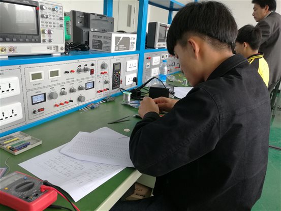 图四:电子产品装配与调试组三等奖获得者秦林在比赛中