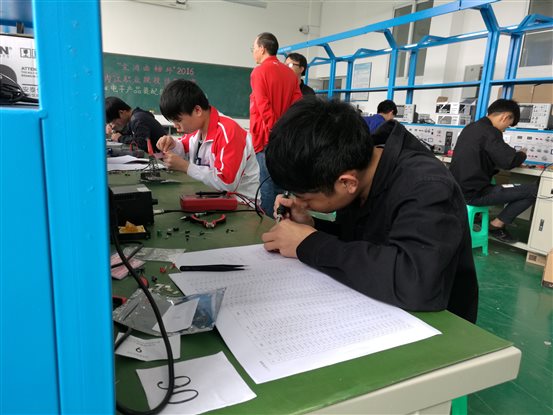 图三:电子产品装配与调试组二等奖获得者梁青松在比赛中