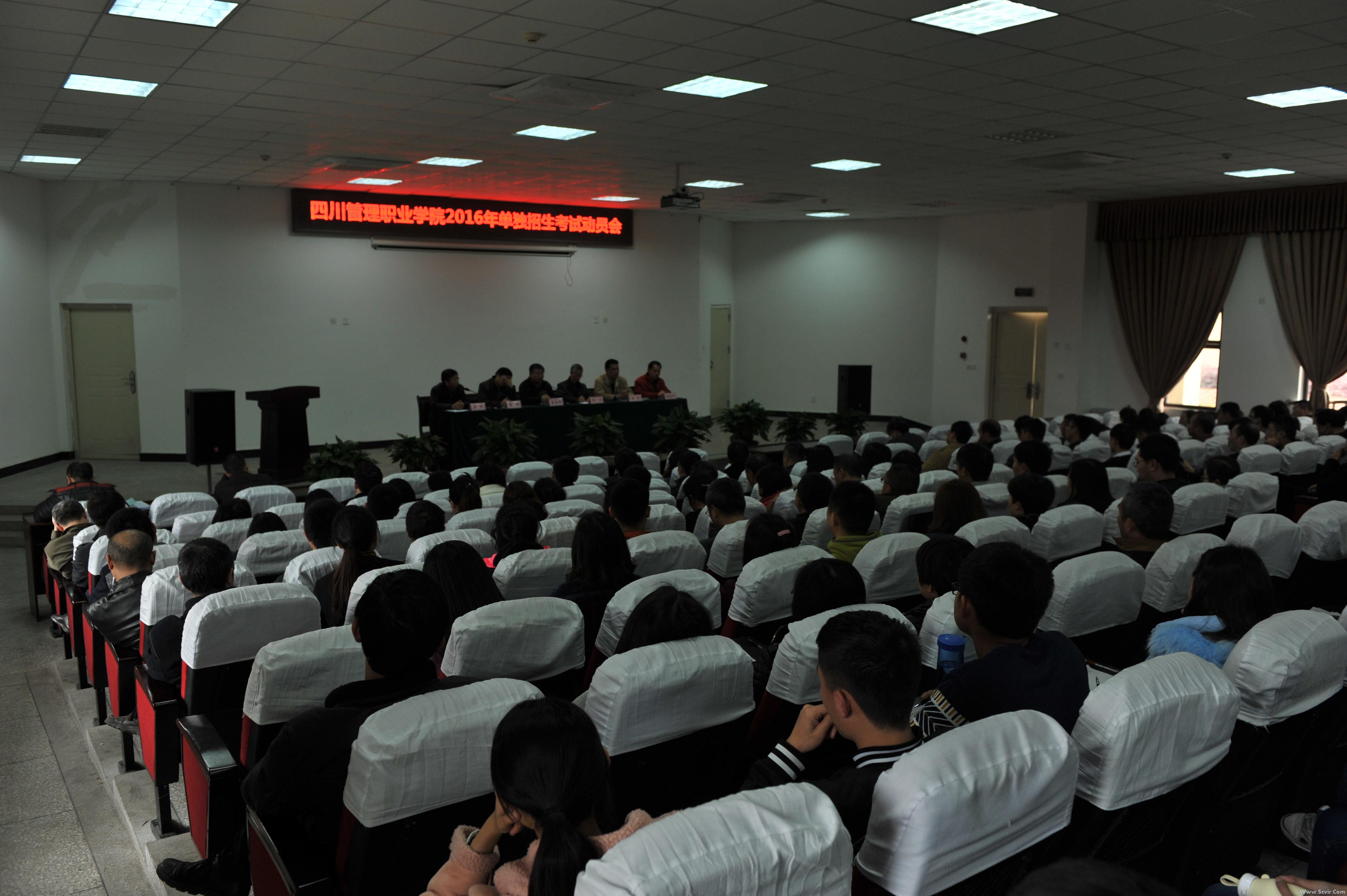为做好我院2016年高职单独招生考试工作,3月24日下午,我院在学术报告厅召开了2016年单独招生考试动员会。学院单独招生考试工作领导小组成员及相关工作人员近200人参会。会议由吴斌副院长主持,院党委书记李青锋作重要动员讲话,周立院长对相关工作做了具体部署。 会议指出,单招考试是国家级考试,学院高度重视,成立了由党委书记、院长为组长的单招考试工作领导小组,下设单招工作纪检组、考务组、命题组及后服安保组等,多次召开单招考试专题会,提前部署,精心准备。 会议要求,各部门必须高度重视,严格按照学院《2016年单独招生考试工作方案》要求,严谨组织各项工作,严格纪律,做好相关应急预案,确保单招考试工作顺利进行。共产党员和骨干教师们要起好模范带头作用。全体单招考试参与人员一定要认真学习单招工作手册,认真参加相关培训,明确单招考试纪律和要求,掌握工作流程,严格按照相关规定,履行好各自职责。各监考人员要注重细节,严谨步骤,严格监考。命题、制卷、试卷传送等工作人员,要严格保密纪律。所有监考、考务人员必须要掌握每个时间节点,确保考试工作顺利开展。 会议强调,我院单招考试工作今年得以开展,是去年我院学徒制试点工作得到教育厅认可的结果,大家要珍惜这样的机会,高标准严要求做好此项工作。各部门和各参与人员,要通过本次单招考试工作,努力学习掌握国家级考试的规范要求,积累经验,以指导和规范我院其他各项考试工作。