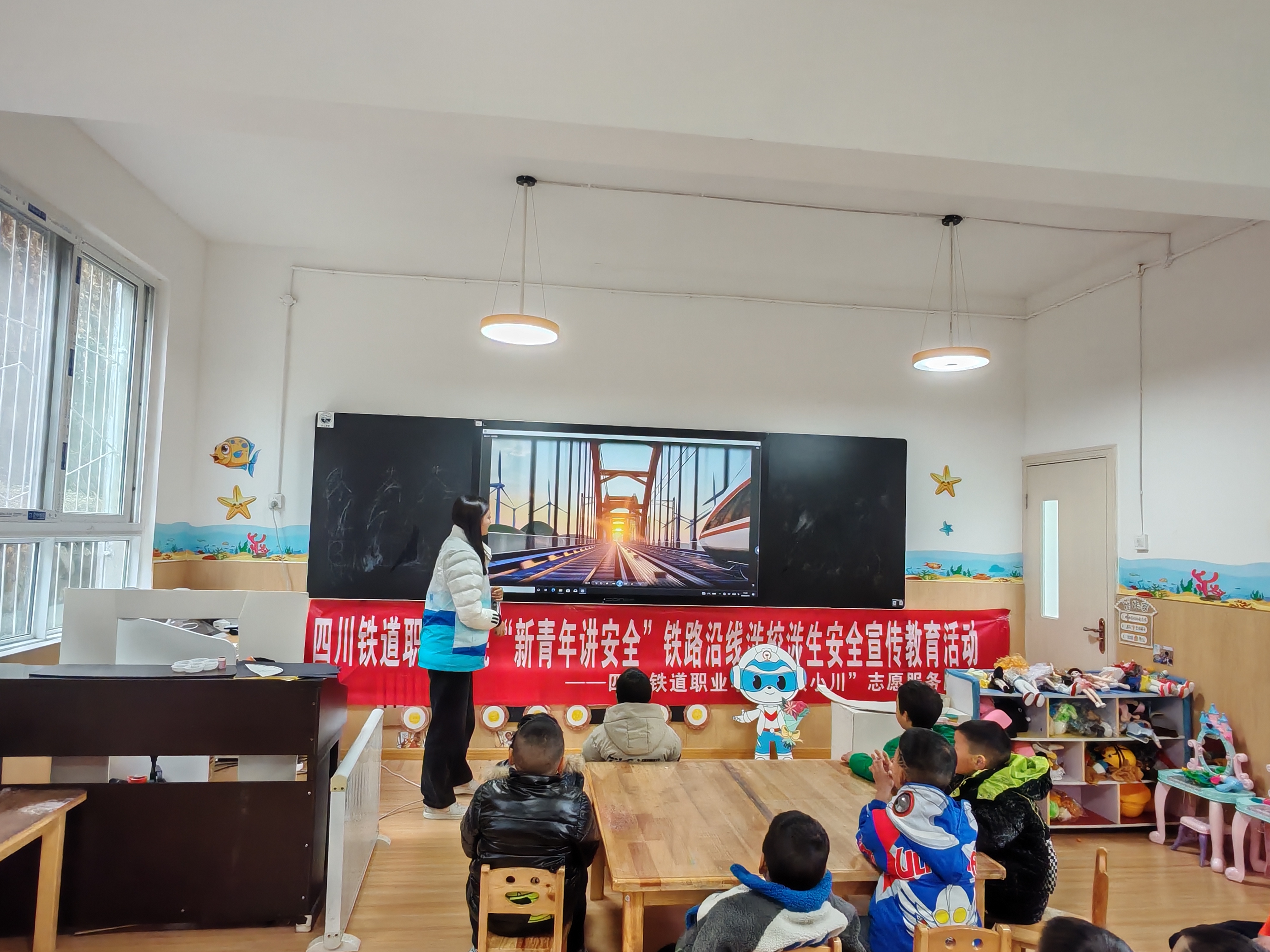 “铁小川”志愿服务团队前期周密策划、精心组织,利用小学升旗仪式、主题班会等载体形式,开展“争当铁路安全小卫士”系列主题活动。“铁小川”通过《铁路沿线安全文明常识宣传手册》和铁路沿线安全宣传视频等宣传内容,逐一对铁路石击列车、穿越轨道、攀爬支柱、线内候车、违禁物品进站等危险行为及其后果进行讲解,讲解活动轻松有趣、简单易懂。并通过以案说法,开展了铁路危险案件警示教育。活动现场还开展知识抢答环节,现场气氛热烈,孩子们兴致高涨,争先恐后地回答问题,充分调动了同学们学习铁路知识的积极性,增强了铁路安全宣传教育的互动性、趣味性。