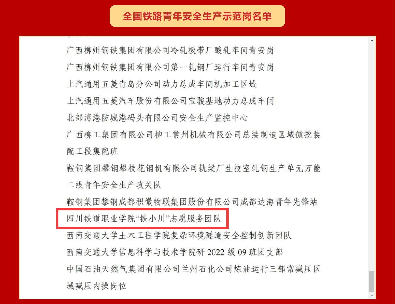 学校坚持以习近平新时代中国特色社会主义思想为指导,深入贯彻落实党的二十大精神和团的十九大精神,全面贯彻党的教育方针,落实立德树人根本任务,充分挖掘办学能力和专业特色,深入探索实践育人模式,将深入开展“铁小川”志愿服务活动作为推动学校思想政治教育的重要途径,引导学生积极参与社会实践,使学生在实践中全面发展。自2015年起,学校与国铁集团成都局成都客运段、成都车站、内江车站等单位合作,开展支援铁路春运志愿服务工作,累计组织5000余名师生参与其中,“铁小川”志愿服务团队遍及12306客服中心、高铁配餐中心、旅服车间、成都东南西北各大车站、内江车站和成沪、成渝等铁路干线2000余趟列车的乘务工作。尽心尽力服务铁路行业,缓解了铁路客运组织的春运压力,为旅客出行提供便捷舒心的体验。目前,学校与国铁集团成都局合作,志愿服务已延伸到周末和节假日,实现对车站旅客服务常态化。 下一步,学校将不断创新人才培养模式,强化实践育人时效,提升“铁小川”志愿服务水平。积极鼓励和引导学生亲身参与社会实践,在实践活动中增长知识、锻炼能力,为构建具有学校办学特色的思政育人体系,勇当服务和支撑中国式现代化的“火车头”贡献青春力量。
