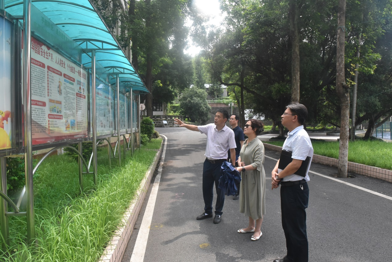 7月17日,校长赖芳、副校长黄勇到内江校区开展安全稳定工作调研督导。内江校区管委会负责人陪同调研。 赖芳一行先后对实训楼旁的堡坎、八号学生公寓、操场旁的边坡,正在进行加固施工的3、4号学生公寓等重点区域进行了实地查看,听取了内江校区管委会近期安全稳定工作汇报。