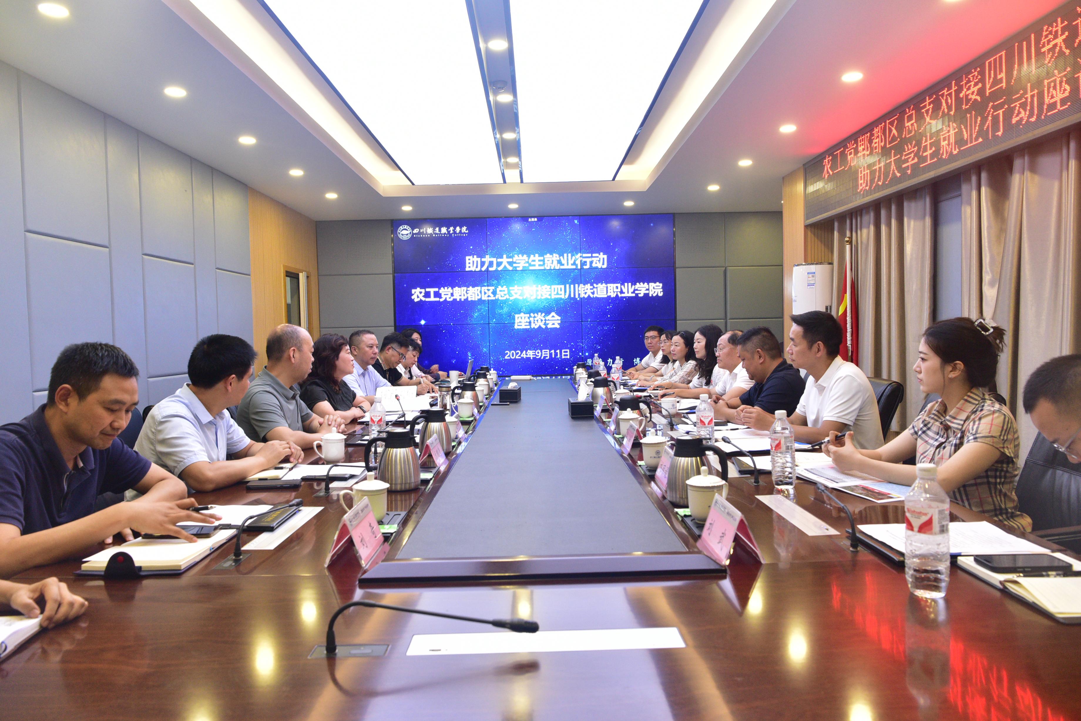 交流会上,双方就用人单位引进、大学生就业政策宣传和咨询、就业指导、法律宣讲、建立创业就业见习基地等促进毕业生就业的具体措施深入交流讨论。 此次交流活动,是双方在促进大学生就业工作上的一次积极探索与大胆创新。通过整合资源、优势互补,为威尼斯大学生就业搭建起了一座坚实的桥梁,为学生们的职业发展之路点亮了明灯,成为推动威尼斯大学生高质量就业的新动力源。 会前,农工党郫都区总支一行参观了学校铁道综合演练基地、城市轨道交通综合实训中心以及及动车组模拟驾驶实训室。党委统战宣传部,机车车辆学院、电信工程学院、经济管理学院负责人和就业处全体人员参加了交流座谈。