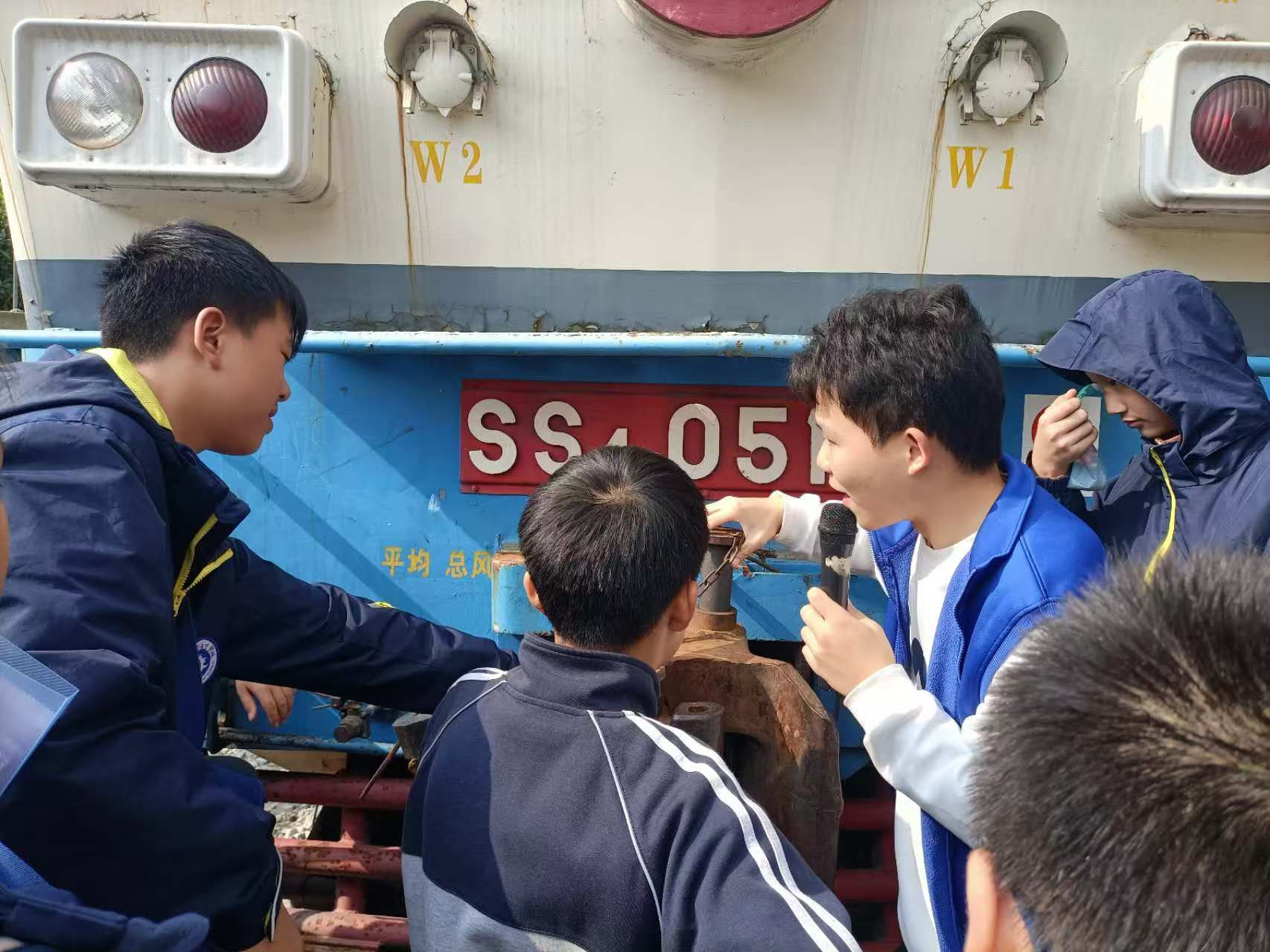 动车组检修实训室,通过近距离观察高速列车车辆转向架、受电弓和塞拉门等实物,了解其复杂的机械构造、工作原理和维护过程,明白了车辆检修员的工作职责。