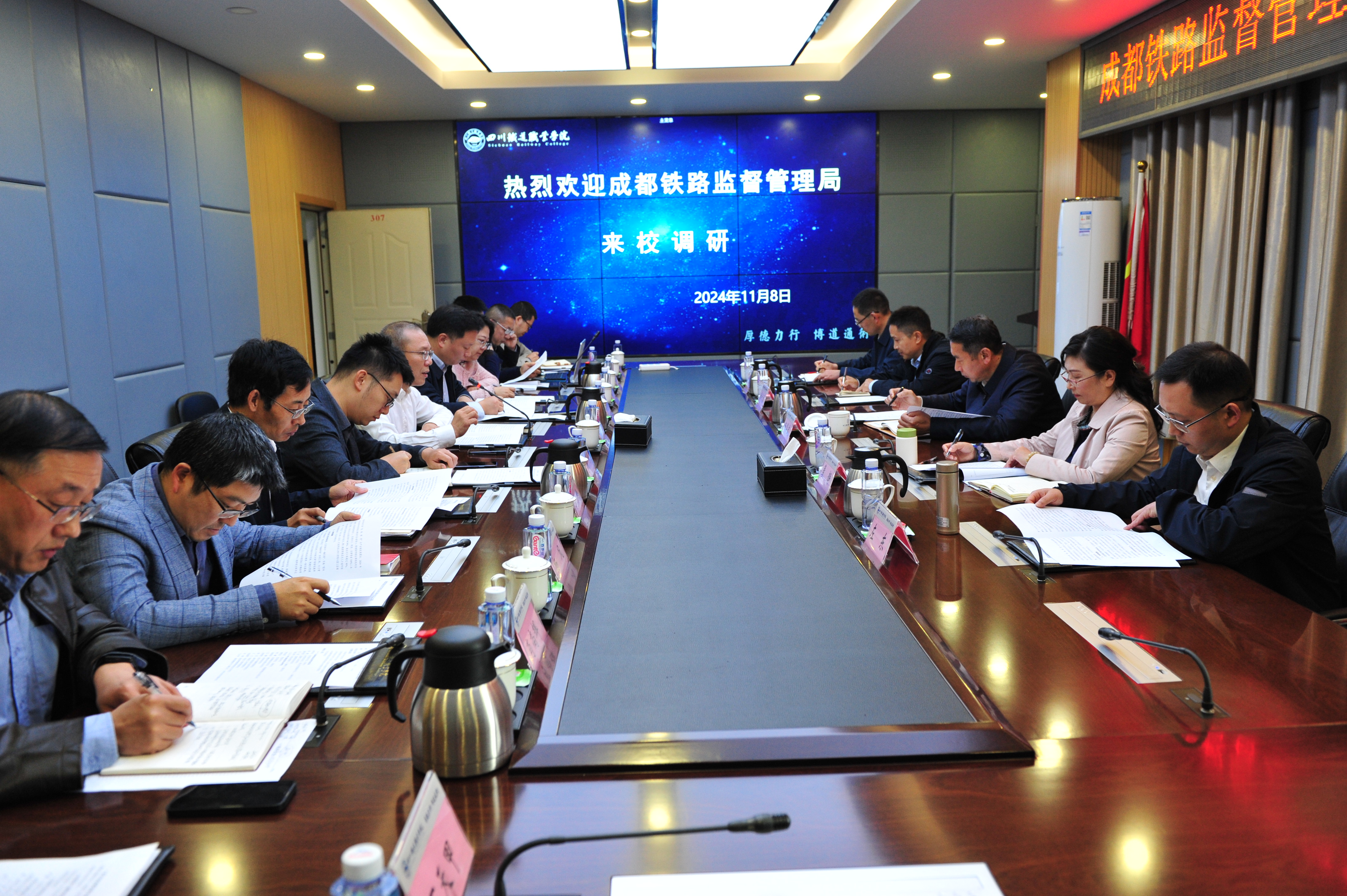 成都铁路监督管理局分党组成员、机关党委副书记、人事处处长裴静,监管三处处长黄代勇,监管四处处长左东,机关党委(人事处)副处长张玉亭随同调研。党委委员、副校长黄恩兴、相关职能部门及二级学院负责人参加调研。