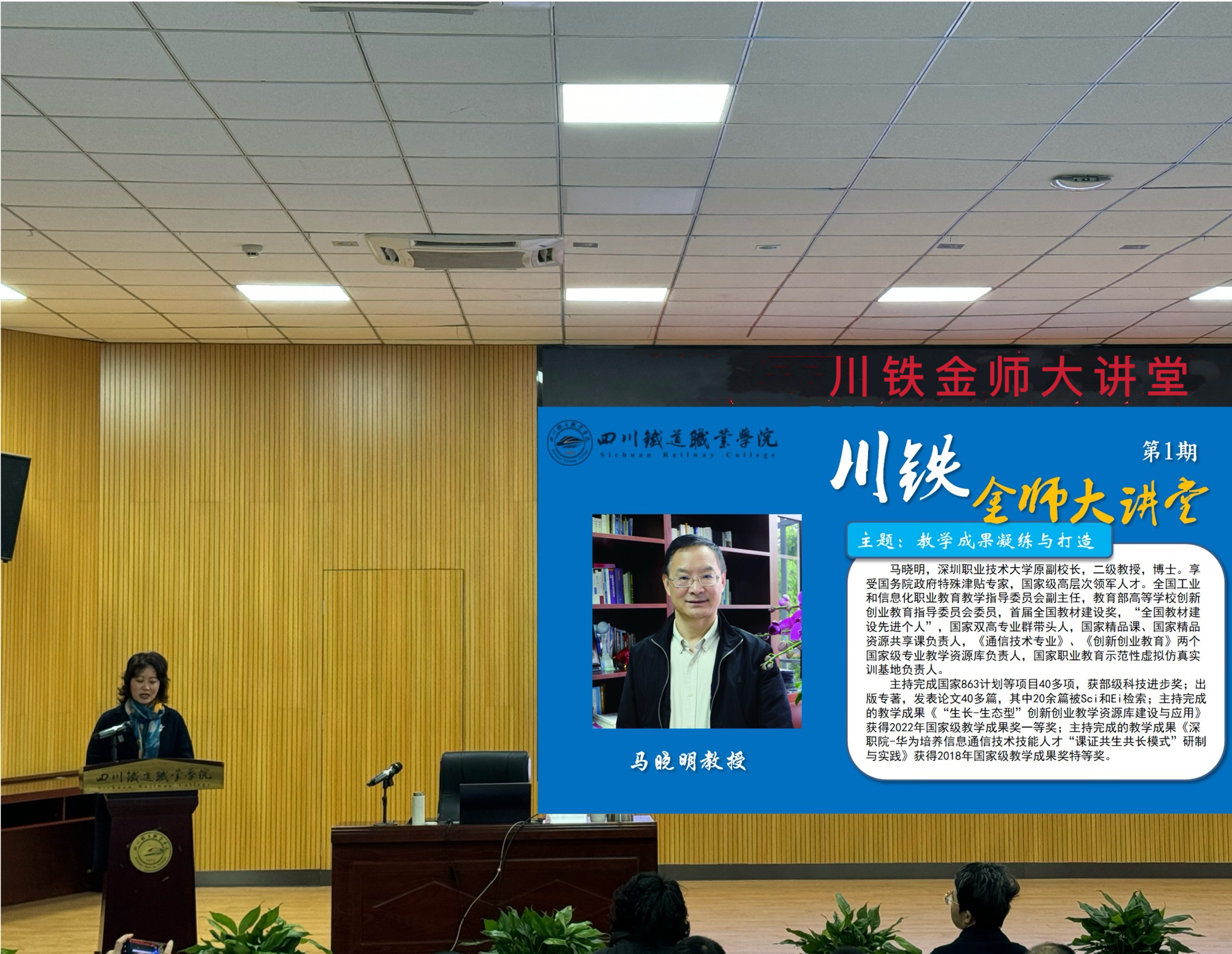 为贯彻落实习近平总书记在全国教育大会上的重要讲话精神,大力弘扬践行教育家精神,培养造就新时代高水平教师队伍,学校创设“川铁金师大讲堂”教师培训品牌,旨在通过邀请名师、专家学者到校面对面交流,进一步提升教师教学素养,促进教学反思,切实提升教师师德修养与课堂教学水平,助力学校事业高质量发展。12月17日上午,学校首期“川铁金师大讲堂”开讲,首讲邀请深圳职业技术大学原副校长马晓明教授来校作“教学成果凝练与打造”专题讲座。校党委副书记、校长赖芳主持讲座,副校长王浩瀓、各教学单位负责人出席活动,100余名教师现场参加培训。 赖芳指出,创设“川铁金师大讲堂”,是学校进一步加强教师队伍建设、提升教师师德修养与教育教学能力水平,推动全面提升教育教学质量走深走实的切实举措。期待通过各部门共同努力,将其打造为一个高水平的学术思想文化交流品牌。希望参训教师珍惜培训机会,静下心来,认真听课,用心感悟,深入思考,积极参与交流互动,做到学有所思、学有所悟、学有所获。