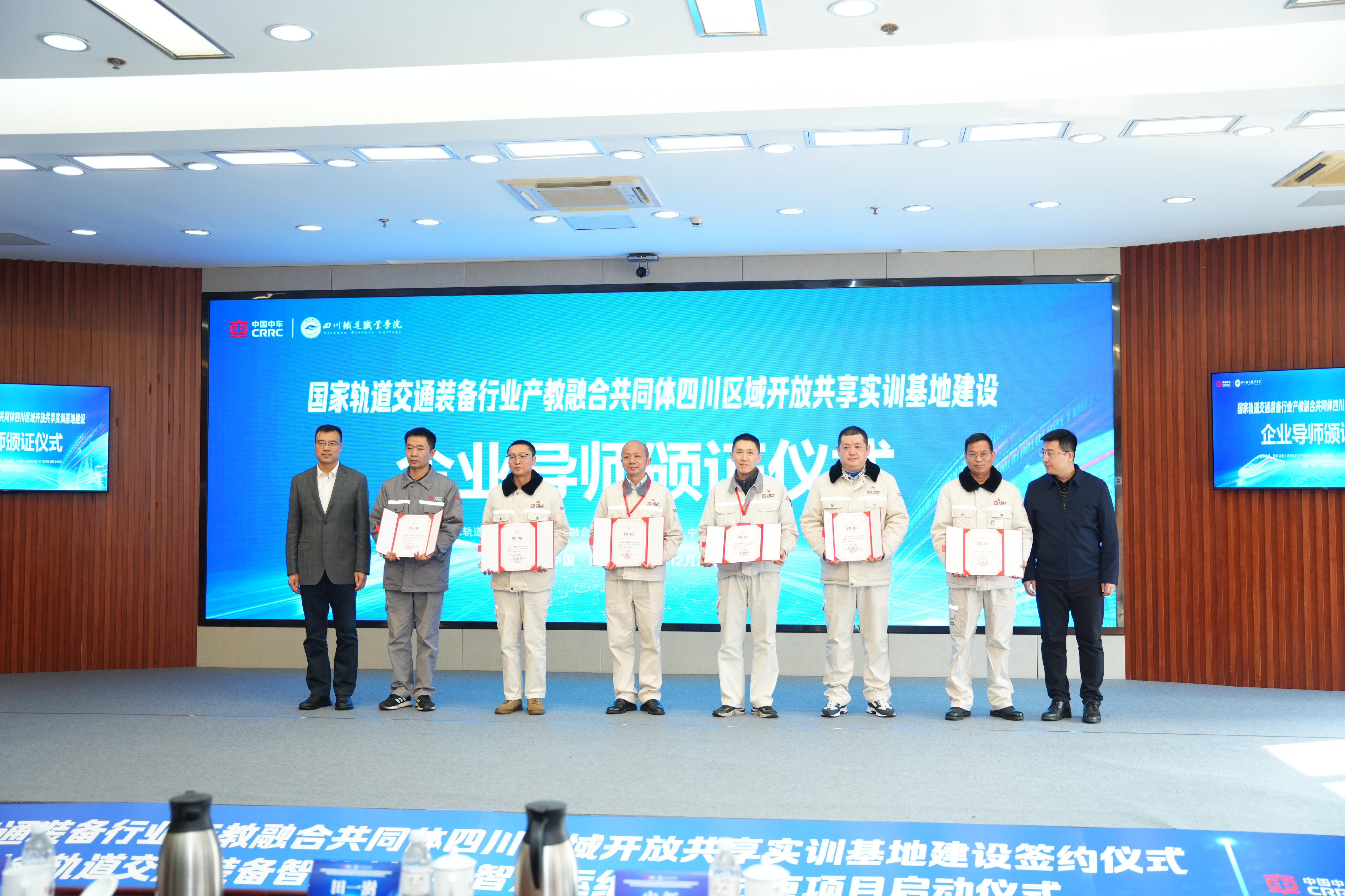 为深入贯彻落实习近平总书记关于教育的重要论述和对产教融合工作作出的重要指示精神,努力打造具有轨道交通装备行业产教融合共同体标杆示范,为轨道交通装备行业加快发展新质生产力夯实人才根基,12 月 26 日,国家轨道交通装备行业产教融合共同体四川区域开放共享实训基地建设签约仪式暨四川省轨道交通装备智能制造与智慧运维产教融合改革试点项目启动仪式在眉山举行。中国中车集团有限公司党委委员、工会主席赵虎,中共四川省委教育工委委员、教育厅党组成员、副厅长石静,眉山市人民政府党组成员、副市长田一澍,学校党委书记贺兆轩、校长赖芳等出席签约仪式。