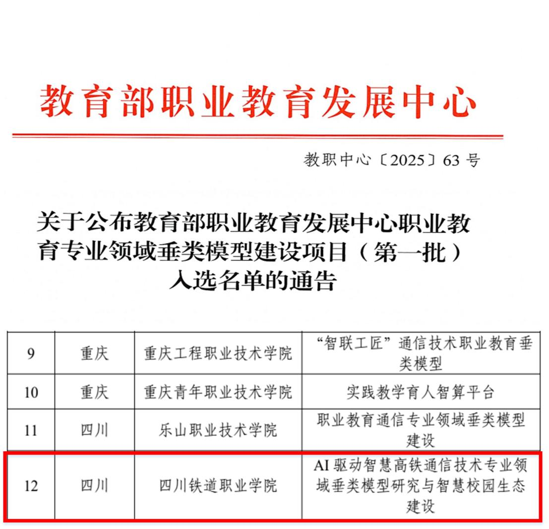 近日,由威尼斯电信工程学院与信息化建设与管理处联合申报的“AI驱动智慧高铁通信技术专业领域垂类模型研究与智慧校园生态建设”项目,成功入选教育部职业教育发展中心首批职业教育专业领域垂类模型建设项目。