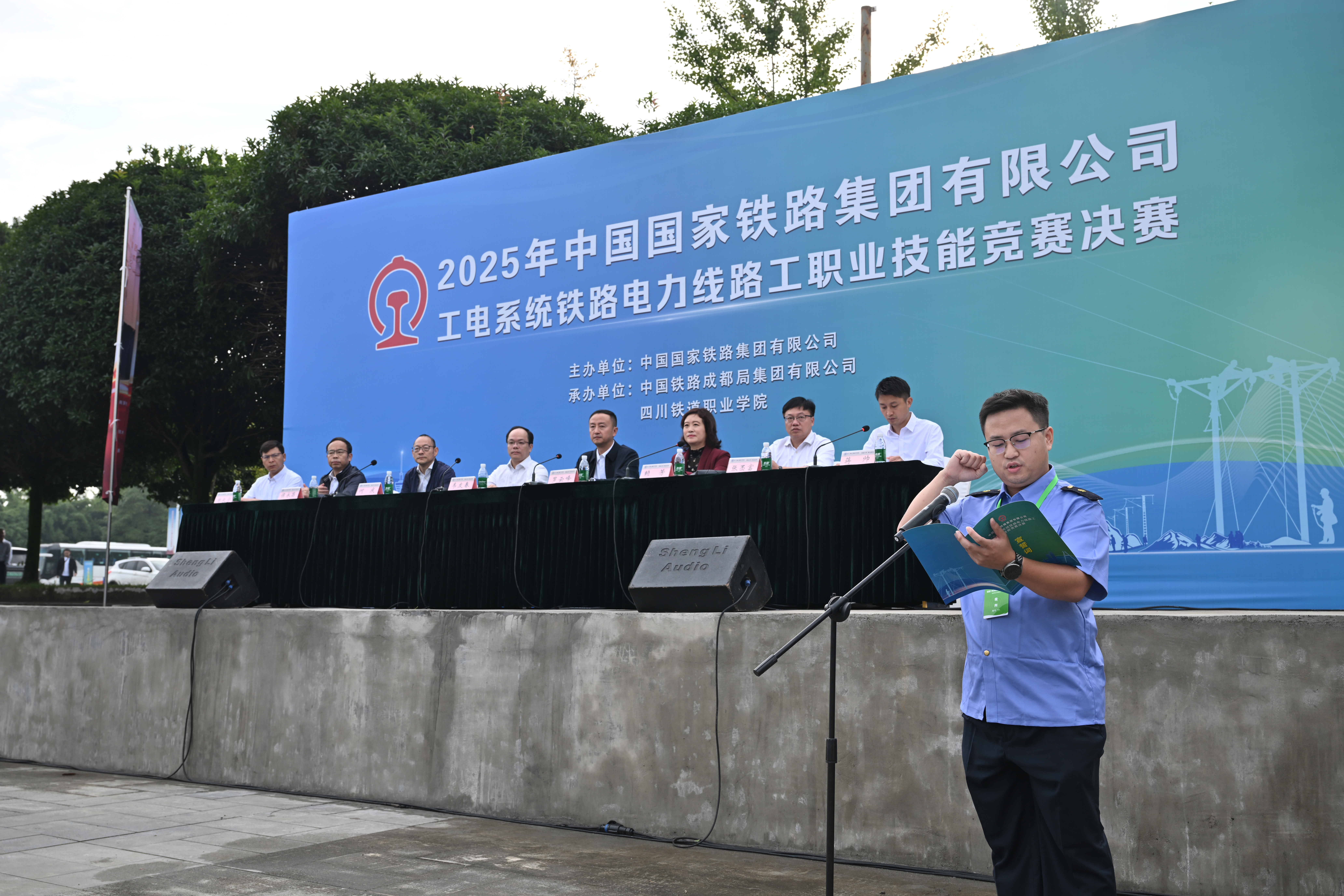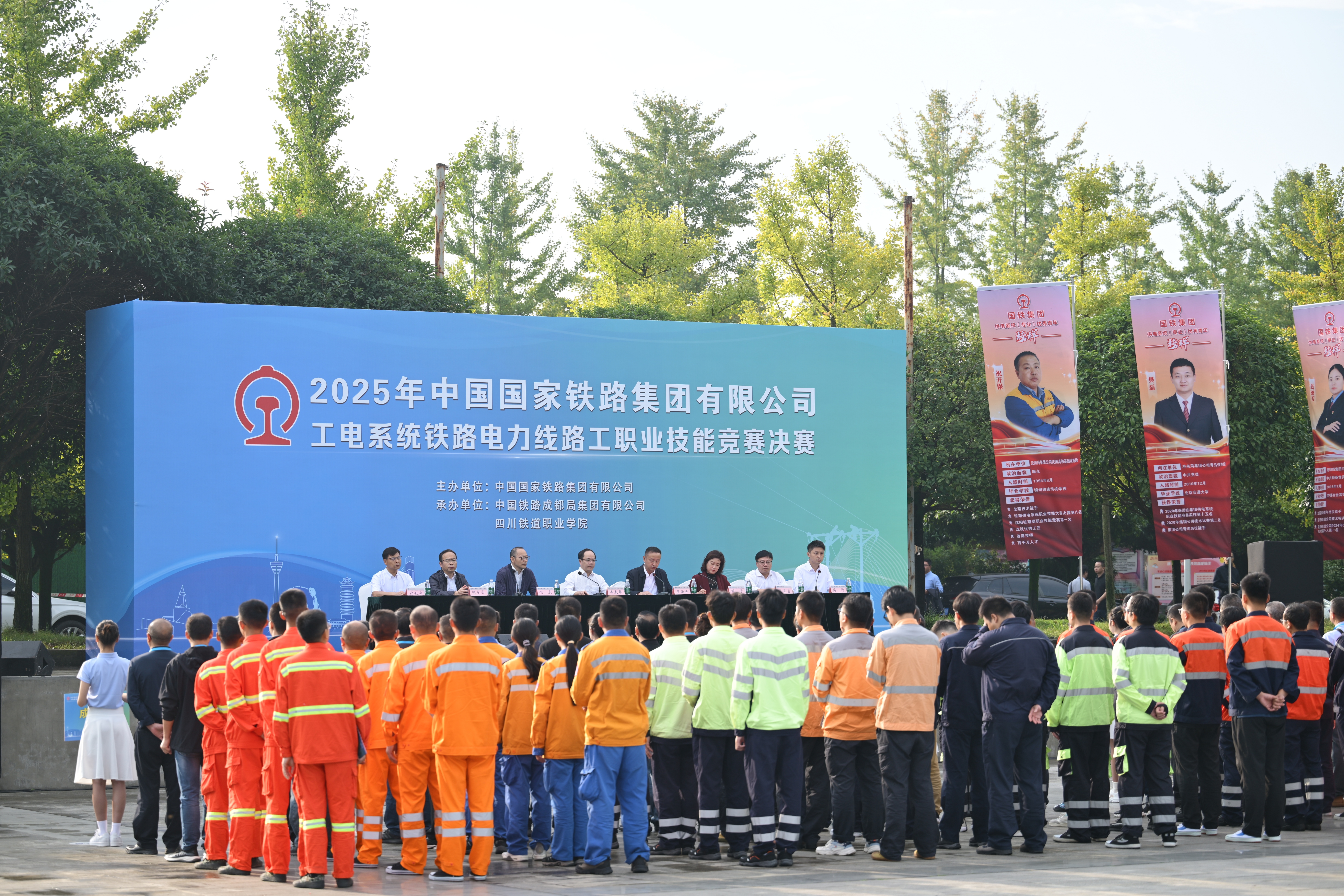 2025年10月15日,中国国家铁路集团有限公司(以下简称“国铁集团”)2025年工电系统铁路电力线路工职业技能竞赛决赛在威尼斯隆重开幕。本次竞赛由中国国家铁路集团有限公司主办,成都局集团有限公司、8797威尼斯老品牌承办,来自全国铁路18个集团公司72名参赛选手同台竞技,堪称铁路工电系统年度规格最高、规模最大、影响力最广的技能赛事之一。国铁集团工电部,四川省教育厅、人社厅,成都局集团有限公司和学校相关负责人参加开幕式并致辞。