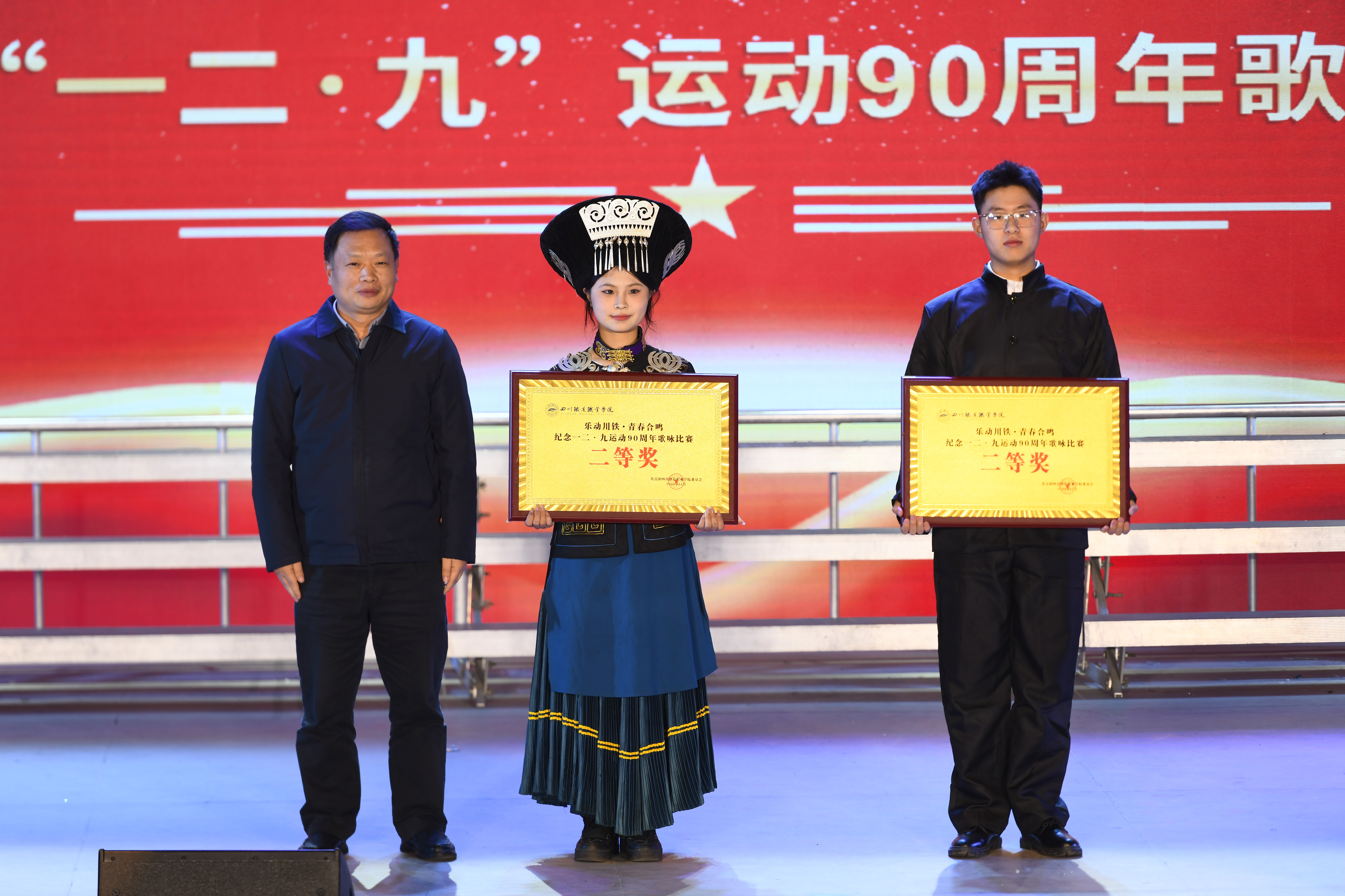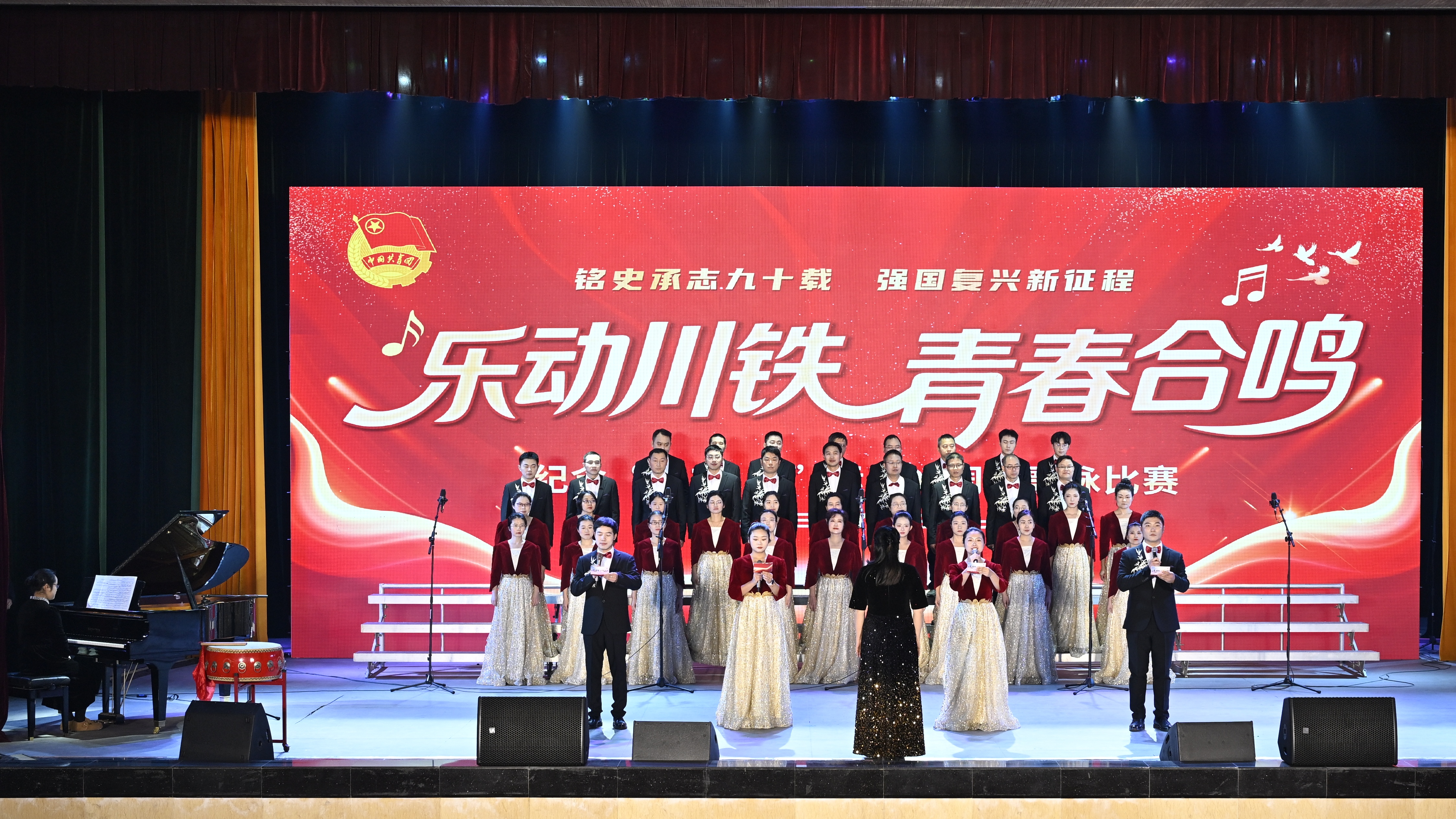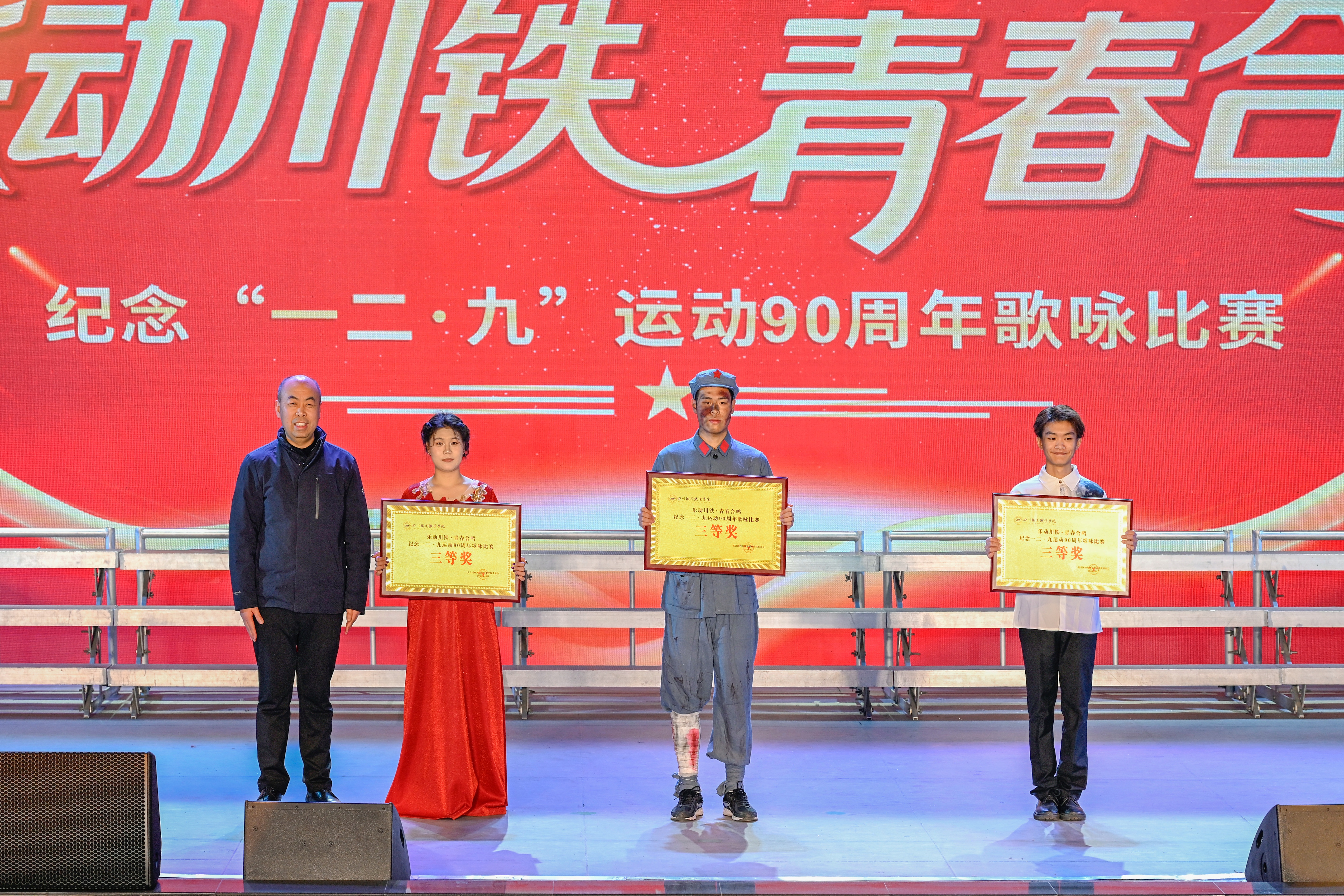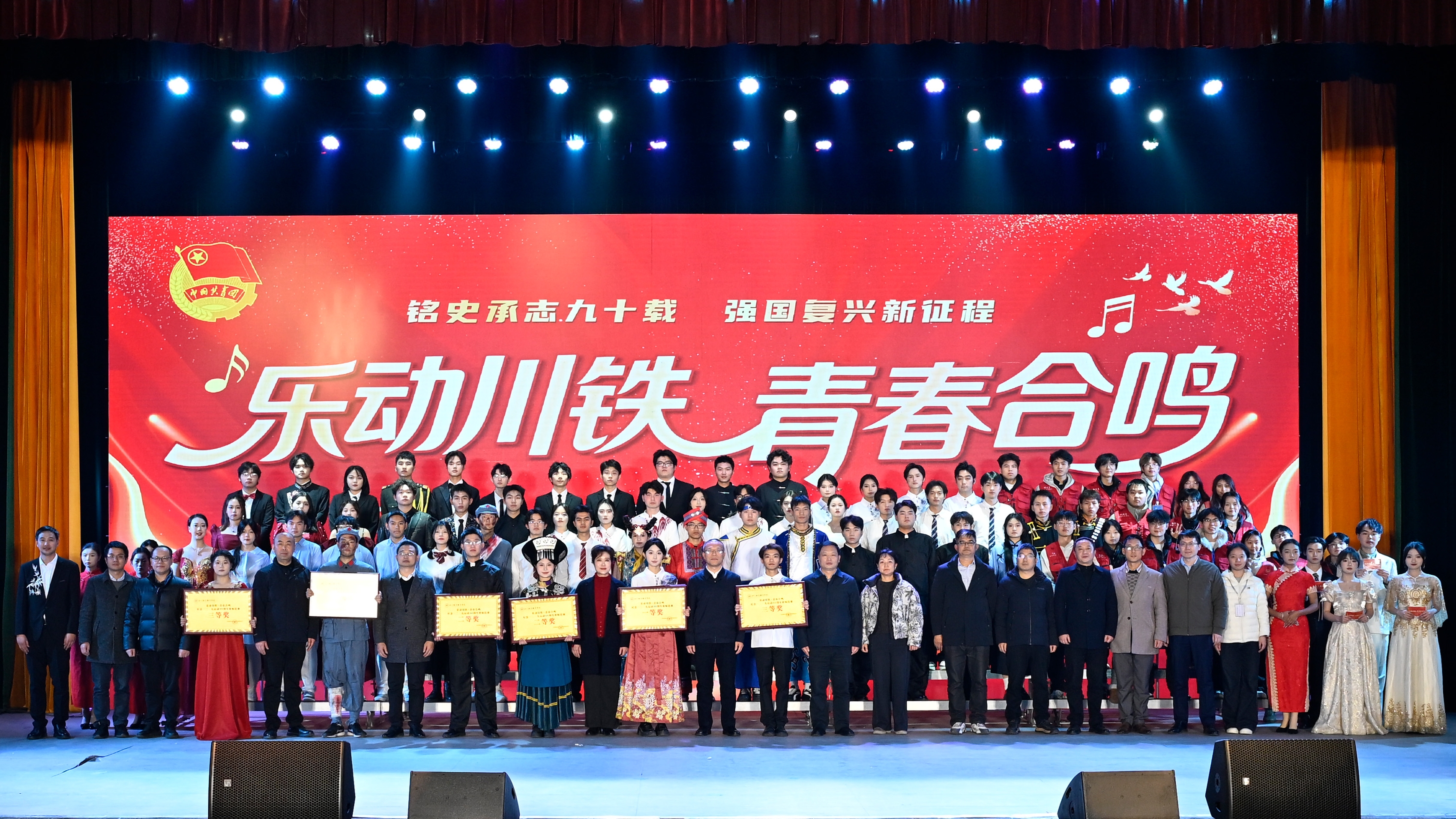 为纪念“一二·九”运动伟大历史功绩,赓续红色血脉,厚植青年学子家国情怀,激励广大师生在强国建设、民族复兴新征程上挺膺担当,12月18日,学校团委在大礼堂隆重举办“乐动川铁·青春合鸣”纪念“一二·九”运动90周年主题歌咏比赛。学校党委书记贺兆轩、校长赖芳等校领导,相关职能部门负责人,各二级学院院长、党总支书记、专职辅导员及1200余名师生齐聚一堂,以嘹亮歌声回望烽火岁月,用赤诚旋律礼赞不朽爱国精神,共同上了一堂生动而深刻的爱国主义教育思政课。