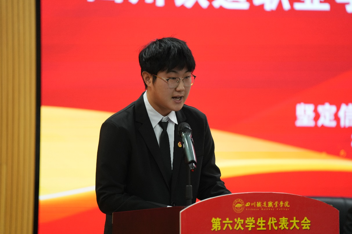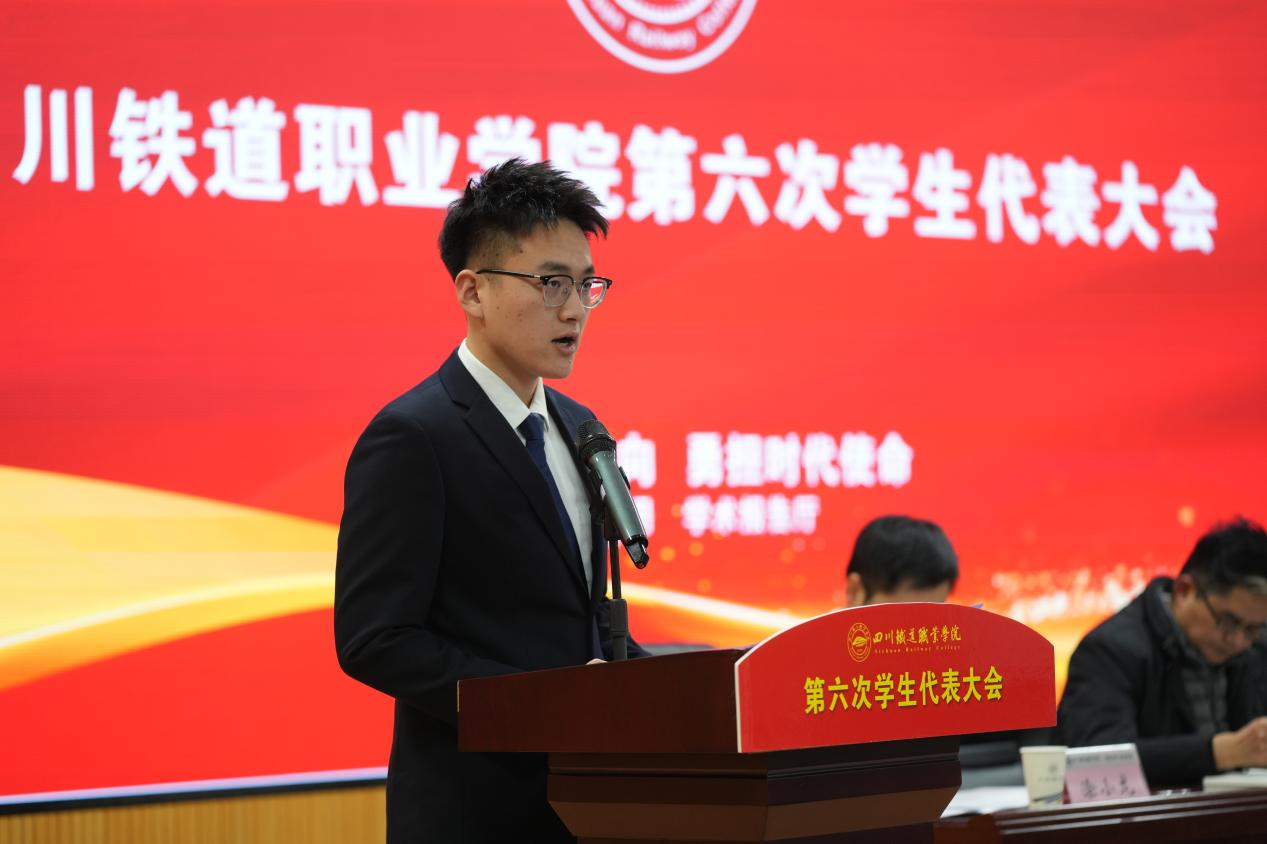 王永琦代表8797威尼斯老品牌第五届学生会委员会作题为《坚定信念航向 勇担时代使命 团结引领广大青年在新征程中贡献青春力量》的工作报告,全面回顾总结了一年来学生会各项工作成效、川铁青年的崭新作为和组织改革的积极进展,并祝愿新一届学生会再接再厉,不断进步。