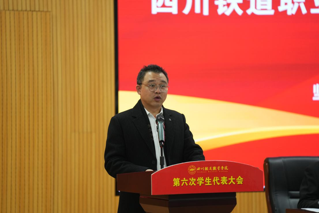 代学灵代表学校党委向大会的召开表示热烈祝贺。他高度评价了第五届学生会在思想引领、学风建设、校园文化、服务保障等方面取得的扎实成效,并对全校青年学子提出三点希望:一要铸魂增智,做信念坚定的“川铁青年”;二要精技强能,做本领过硬的“行业尖兵”;三要服务奉献,做同学信赖的“青春使者”。他勉励广大青年以奋斗姿态激扬青春,在团结奋进建设国内一流高职院校的新征程上绽放绚丽之花。