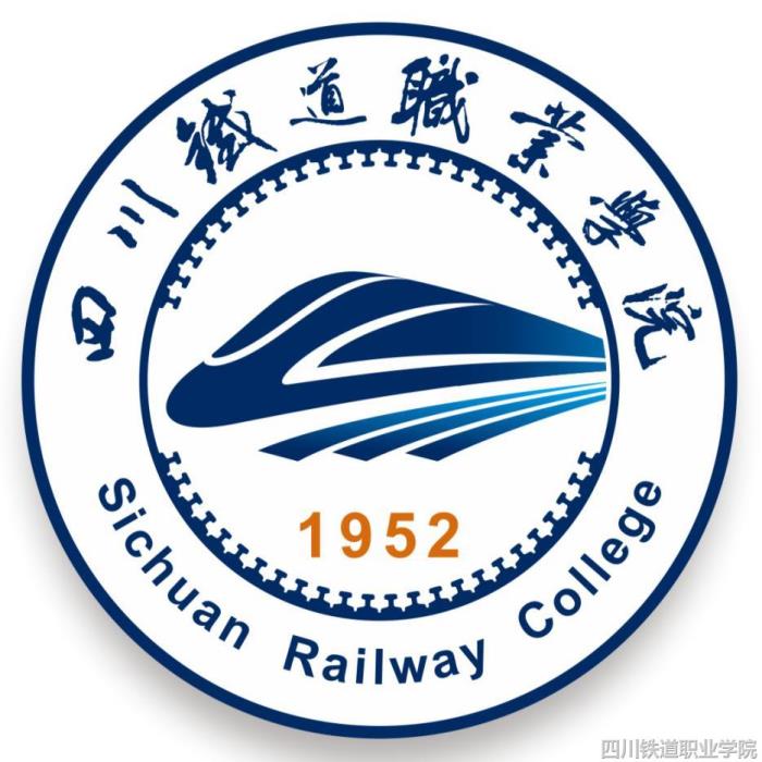 校徽中心是动车造型和三组铁轨造型,代表学校主专业是铁路专业。动车和铁轨有颜色渐变和粗细渐变,使图案具有动感,代表列车飞驰和学校快速发展。动车造型是一个“四”字,并内嵌了“四川”二字的拼音首字母“SC”,铁轨造型是一个“川”字,共同代表学校所在地。动车与铁轨造型结合起来寓意为“四川铁道”,代表学校在四川铁路职业教育领域的排头兵地位。