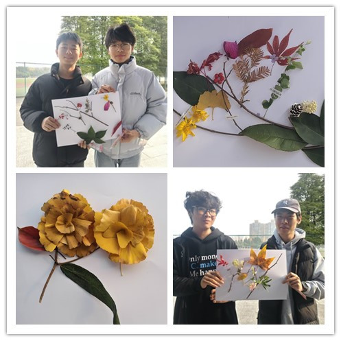 创作现场,同学们专注投入,或凝神构思布局,或细心裁剪拼接。干枯的枝丫在手中化身灵动的枝干,斑斓的落叶化作绚烂的花朵,小巧的松果点缀其间,原本寻常的自然素材在巧思组合中焕发新生。有同学以枯木为基,搭配金黄银杏叶,勾勒出对青春的憧憬;有同学用多彩干花点缀,诉说人际间的温暖。创作之余,大家主动分享作品背后的故事,交流创作时的心境,在彼此的倾听与共鸣中,学业压力与生活烦恼悄然消散。作品完成后,同学们纷纷在植物便签上写下寄语,定格此刻的心灵感悟。