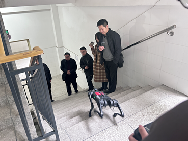 随后,团队学生操作四足智能巡检机器人进行了建图、导航、控制、上下楼梯等表演。在演示过程中,双方就机器人巡检的安全性、技术性、实用性、精确度、环境适应性等方面进行深入交流,探讨了科研研发的方向,拟定了研发内容,就项目合作相关工作进行了交流。