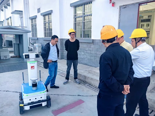 在此次调研中,机器人公司钟经理向我院教师展示了自主巡检机器人的使用方式,详细讲解了其运营情况,并介绍了控制终端使用界面,展示了机器人历史检测数据及违规违章报警数据。