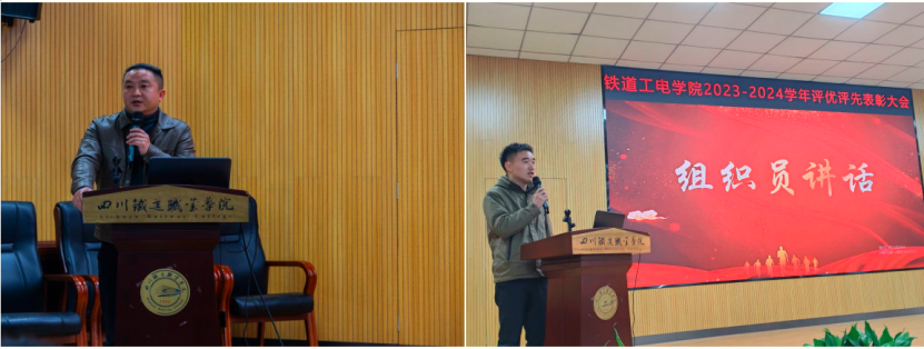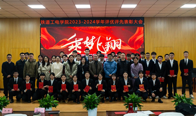 为表彰先进,树立先进榜样,激发青年学生奋发向上,全面深化学院学风建设。12月2日下午,铁道工电学院在学术报告厅开展了以“表彰先进个人、先进集体,树立优秀学习风气”为主题的2023-2024学年评优评先表彰大会,学院副院长董浩、组织员江锋、学生科科长陈光杰、全体辅导员、学生代表,共计260余人参加了本次大会。