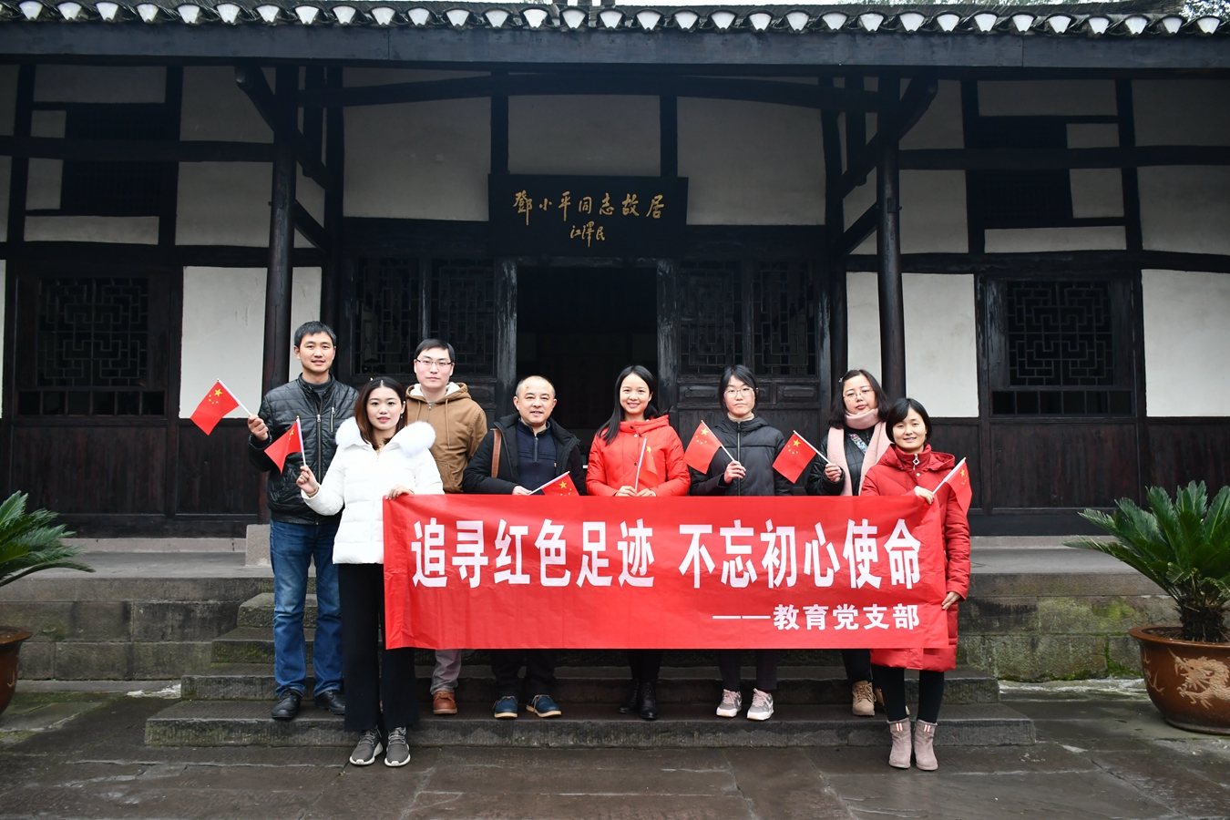 为庆祝建党98周年,新中国成立70周年,回顾改革开放41年伟大成就,重温党的光辉历史,继承和发扬党的光荣传统和优良作风,激励广大党员坚定理想信念,强化党性修养2019年12月27日-28日,教育党支部党员及入党积极分子前往广安邓小平故里开展“追寻红色足迹·不忘初心使命”主题党日活动。