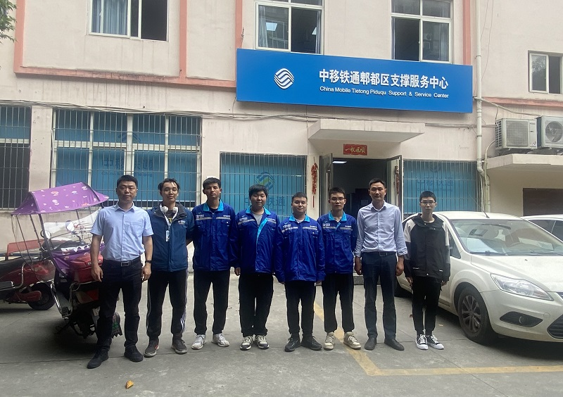 为全面贯彻落实党的二十大精神,积极响应国家职业教育发展新政策,深入推进校企合作,促进毕业生高质量就业,5月25日下午,电信工程学院党总支副书记刘奇、副院长漆玉强、辅导员程明惠赴中移铁通郫都区支撑服务中心实地走访调研,看望顶岗实习学生。中移铁通郫都区支撑服务中心负责人胡扬孟、五星装维师刘建春接待了刘奇一行,双方在中心会议室开展座谈交流。