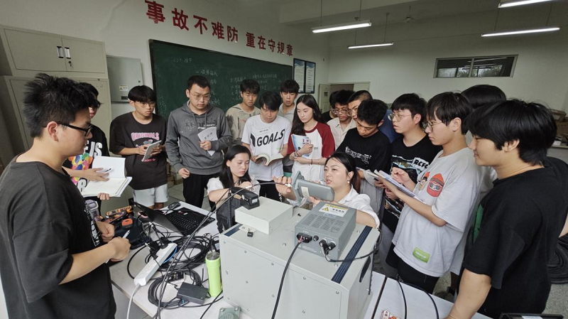 本次联合教学活动以《铁路移动通信系统》课程为依托,青丽首先针对CIR设备进行了介绍和对设备所需维护测试参数进行了讲解。殷小茜带来了XY-7666A车载设备天馈系统综合测试仪和各种型号的手持电台等学校没有的仪器仪表,供学生操作使用。同时,指导学生使用综合测试仪完成对450MHZ电台天馈线、GSM-R电台天馈线,GPRS天线的驻波比测试;电台发射功率的测试、LBJ电台的参数测试,完成对天馈线故障定位测试等实作项目。殷小茜还生动形象的给同学们讲解了现场最新的检修作业标准,分享了今年出现的检修作业违规案例,强调了维护人员操作注意事项,提高大家的安全意识。