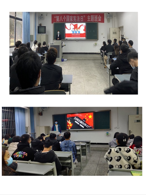活动期间,首先以我院学生为抓手,各班级开展了主题班会,引导同学们了解宪法知识,理解宪法内涵。此外,全院学生参加了“宪法、民法典”晨读活动,为大家营造了一个庄严、肃穆的环境,让宪法“声”入人心,激励同学们明确知法守法的重要性。此次主题教育采取线上线下相结合的方式,充分利用我院宣传阵地“青春电信”发布宪法有关知识,实时推送各项活动的开展情况,相关内容的推文点赞数100+、阅读量600+。我院通过多种形式,积极扎实提高了法治宣传教育实效性。
