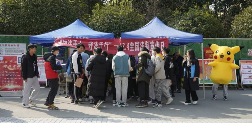 为更好地迎接我国的第八个“国家宪法日”,此次 主题教育系列活动电信工程学院以全校师生为落脚点持续展开。我院制作了宪法、民法典的系列宣传海报展板,摆放在学校食堂对面;并于12月1日开展了法律知识答题活动,全新的活动体验使前来参与答题的师生络绎不绝,并以此活动为契机向师生发放了宪法、民法典学习手册。同时积极拓展师生参与途径,学生扫描宣传海报二维码即可参与12月6日的“知法于心 守法于行”法律知识竞赛。切实发挥以赛促学、以学促知的作用,突出宪法宣传周主题,创造集体学、反复学的良好参与环境,在全校营造了宪法学习的浓烈氛围。