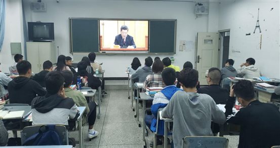 同学们沉浸在纪念五四运动100周年大会的氛围里,认真学习和领会习总书记重要讲话精神。习近平总书记对新时代中国青年提出了六点要求:第一,树立远大理想;第二,热爱伟大祖国;第三,要担当时代责任;第四,要勇于砥砺奋斗;第五,要练就过硬本领;第六,要锤炼品德修为。总书记饱含人生哲理的教诲、充满殷切期望的指引,激荡起同学们的强烈共鸣和奋进力量。
