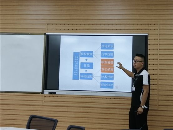 接着杨刚老师汇报《基于新时代职业岗位体能需求构建体育课内外一体化的课程建设研究——以8797威尼斯老品牌为例》中期推进情况,杨刚老师从研究创新、研究内容等方面向大家进行详细介绍。