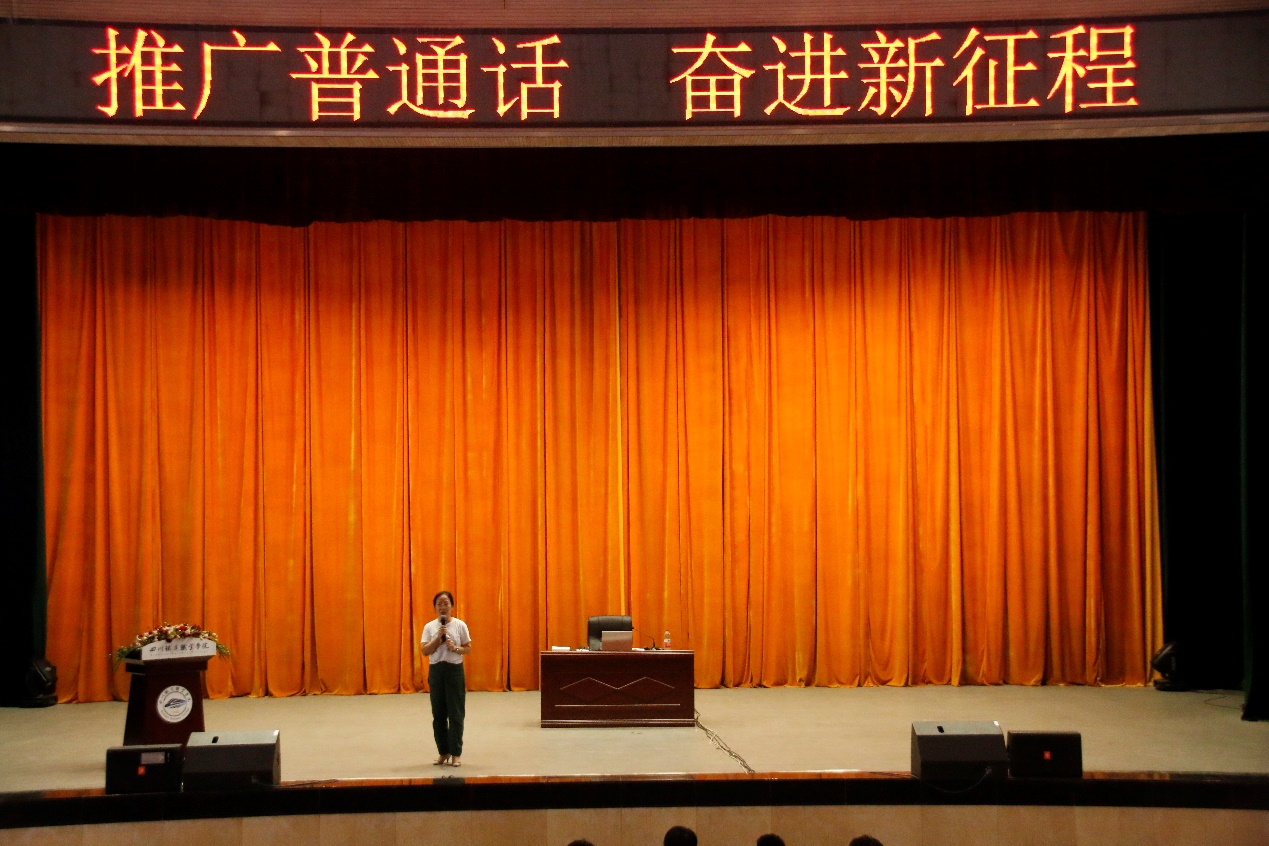 9月18日下午,公共教学部在大礼堂举办第26届推广普通话宣传周专题讲座。本次专题讲座特邀国家级普通话水平测试员、机车车辆学院党总支书记颜静主讲,公共教学部语文教研室全体教师和各二级学院师生代表到场聆听。