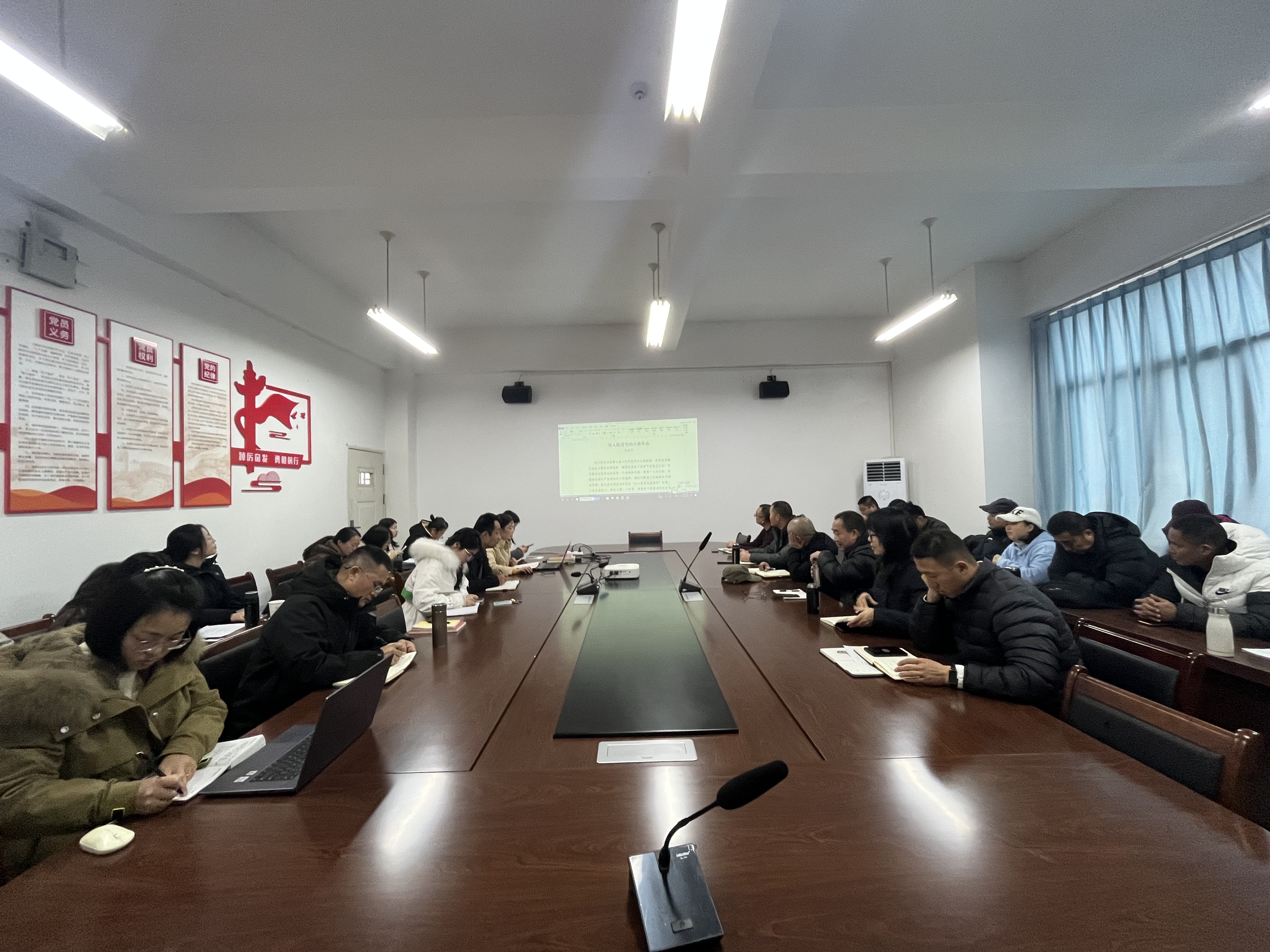 12月23日下午,公共教学部教职工政治学习活动在2501室开展。本次活动由党总支书记翁静主持,全体教师参会,学校继续教育中心副主任丁天甲一起学习。