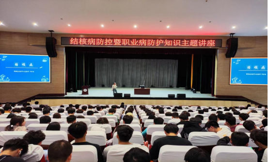 4月29日下午,后勤国资处邀请成都市郫都区疾病预防控制中心艾滋病与结核病防制科、卫生科的张婷婷和叶兴雨两位医生来威尼斯开展结核病防控暨职业病防护知识主题讲座。讲座由后勤国资处副处长李昌涛主持。医务人员、辅导员、生活老师及各二级学院学生代表共600余人到场聆听。