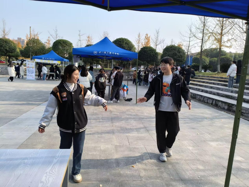 活动现场,工作人员请参与同学抽取挑战卡片,根据指令,“冒险”邀请陌生同学共同完成唱歌、跳舞,进行趣味游戏或相互留下联系方式等,完成规定任务后方可获得印章。活动中,同学们从陌生到熟悉,再到携手默契完成挑战,大家主动“破冰”走出舒适圈,克服尴尬,公开表达,现场充满了欢声笑语。