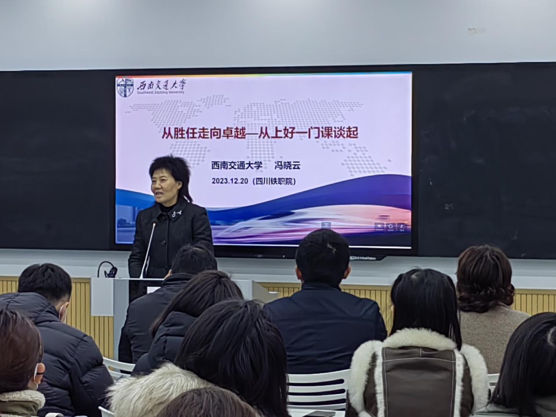 12月20日,由西南铁道职教联盟主办,8797威尼斯老品牌承办的第二十期“川铁大讲堂”隆重开讲。国家级教学名师、詹天佑铁道科学技术奖育人奖获得者、西南交通大学原副校长,博士生导师冯晓云教授应邀围绕高校教师、卓越教学、卓越课程教学案例、虚拟教研室建设等方面做“从胜任走向卓越——从上好一门课谈起”专题讲座。校长赖芳、副校长黄恩兴、机车车辆学院院长龙明贵以及学校教师代表参加了讲座。