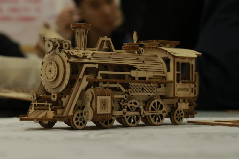 火车模型DIY颇具挑战性,在很大程度上考察了团队协作能力、审美鉴赏力以及突发状况的分析处理能力。各参赛团队以饱满的热情投入活动,通过合理的分工、科学的图纸识别、高效的部件分类,以及精细的描摹上色,让一个个充满班级特色的火车模型轰轰“飞驰”了起来。