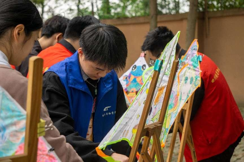 活动中,志愿者们以饱满的热情参与志愿服务:协助工作人员进行场地桌椅布置,清点奖项物资,同时将优秀风筝作品固定在展架上,供来往行人观赏。在服务过程中,志愿者们也主动学习风筝制作工艺,了解风筝深厚的文化内涵,担当起宣传讲解工作,传播风筝背后的故事。