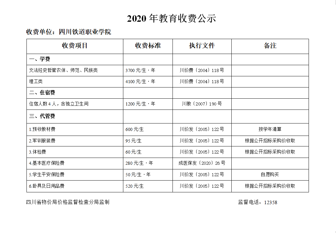 2020年教育收费公示